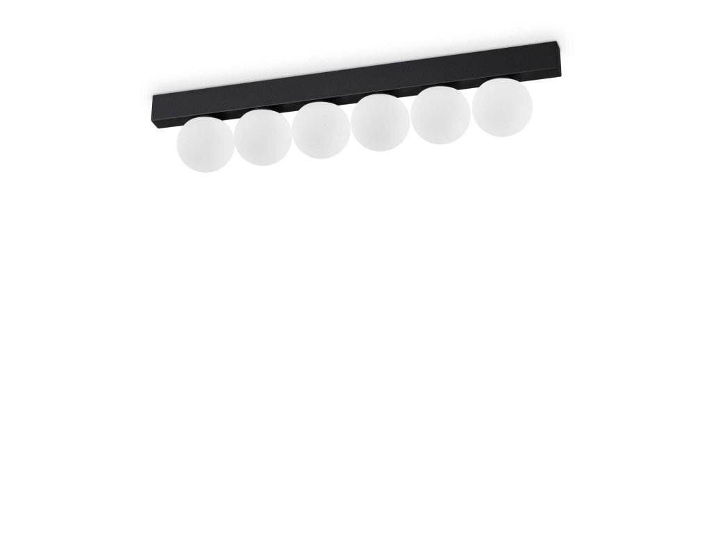 Kovový rám s povrchovou úpravou práškovým lakom. Difúzory s matnými priehľadnými akrylovými guľami. Integrovaný ovládač. Povrchová úprava: biela, čierna, kartáčovaná mosadz.