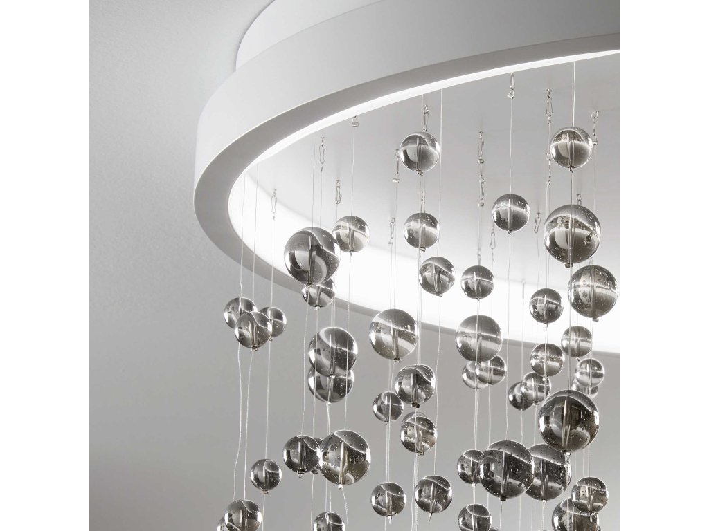 Stropné LED svietidlo ARMONY s matne lakovaným kovovým rámom. Závesné dekoratívne prvky z kovového drôtu s priehľadnými chrómovanými sklenenými korálkami. Svietidlo je ideálne do obývacej izby alebo spálne. Svietidlo s priemerom 70 cm s bielou povrchovou úpravou.