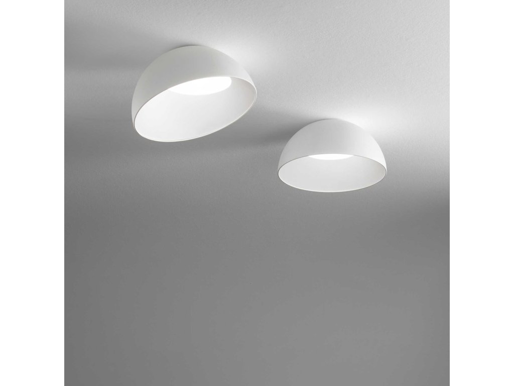 Matne bielo lakovaný kovový rám. Saténový opálový polykarbonátový difúzor.