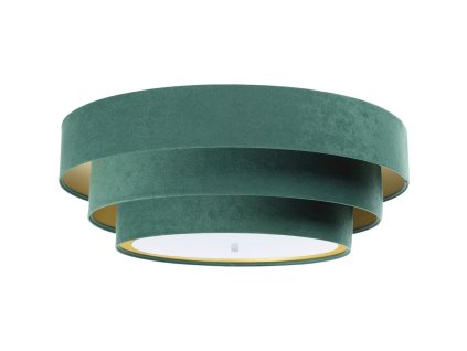 Stropné svietidlo TRINITY v tmavo zelenej farbe v kombinácii s bronzovou a krémovou farbou.