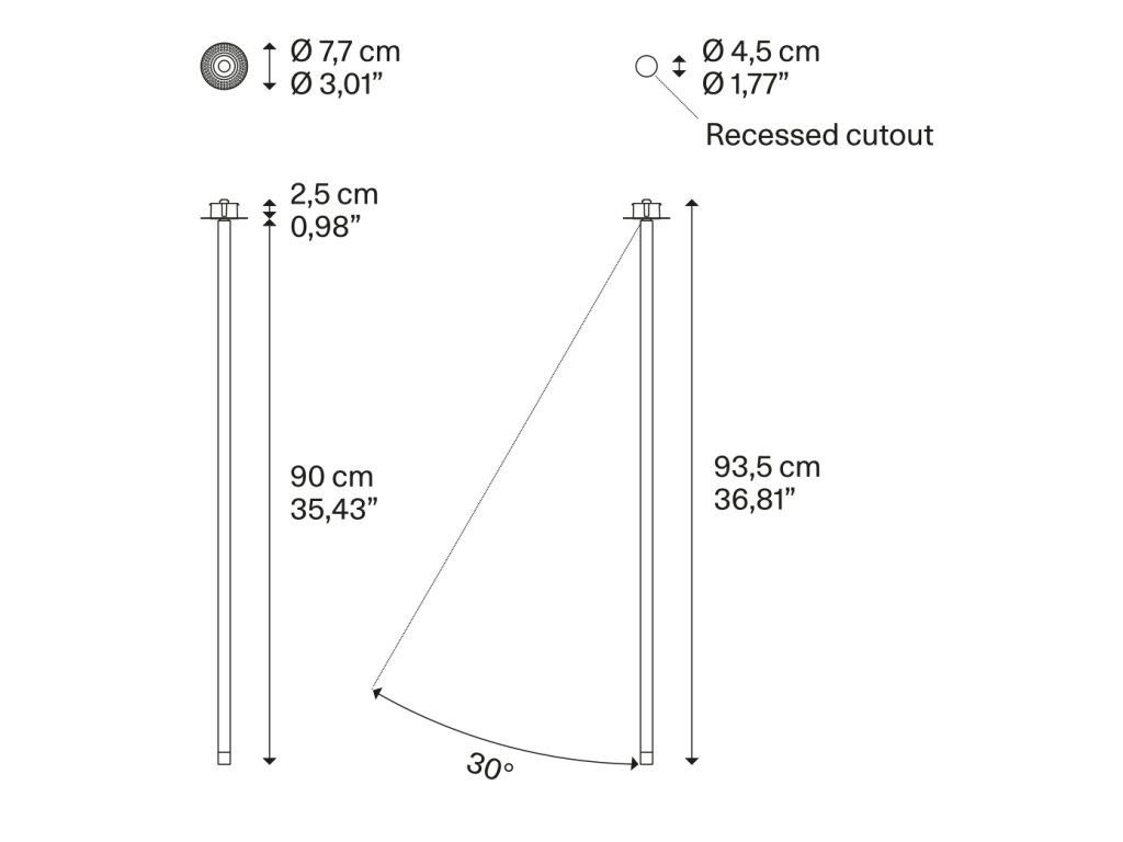 • Zapustená verzia (Ceiling-Recessed) – umožňuje naklonenie až o 30°, vďaka čomu je možné presne nasmerovať svetelný lúč. Ideálne pre zdôraznenie architektonických detailov, vytvorenie rytmických vzorov alebo rozmanitých, scénografických kompozícií napríklad vo vstupných halách, galériách či komerčných interiéroch.