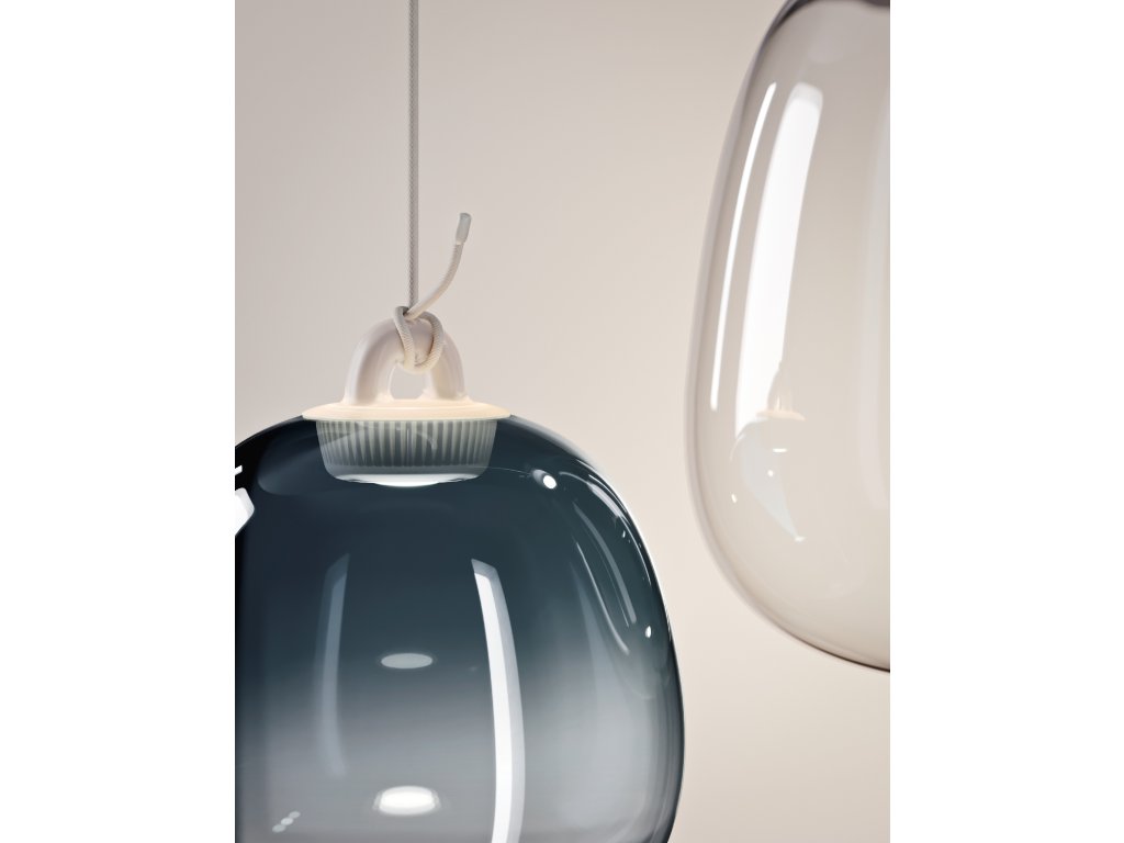 Oblo je závesné svietidlo s výrazne dekoratívnym charakterom, ktoré vzniklo v spolupráci značky Lodes a dizajnového štúdia Paola Navone - OTTO Studio. Jeho hravý a poetický dizajn čerpá inšpiráciu z mora a námorného sveta - evokuje tvary bójí, lán a morských skiel. Sklenený difúzor z borosilikátového skla (Pyrexu) má plynulú, takmer tekutú siluetu, ktorá dodáva svietidlu jemnosť a ľahkosť.