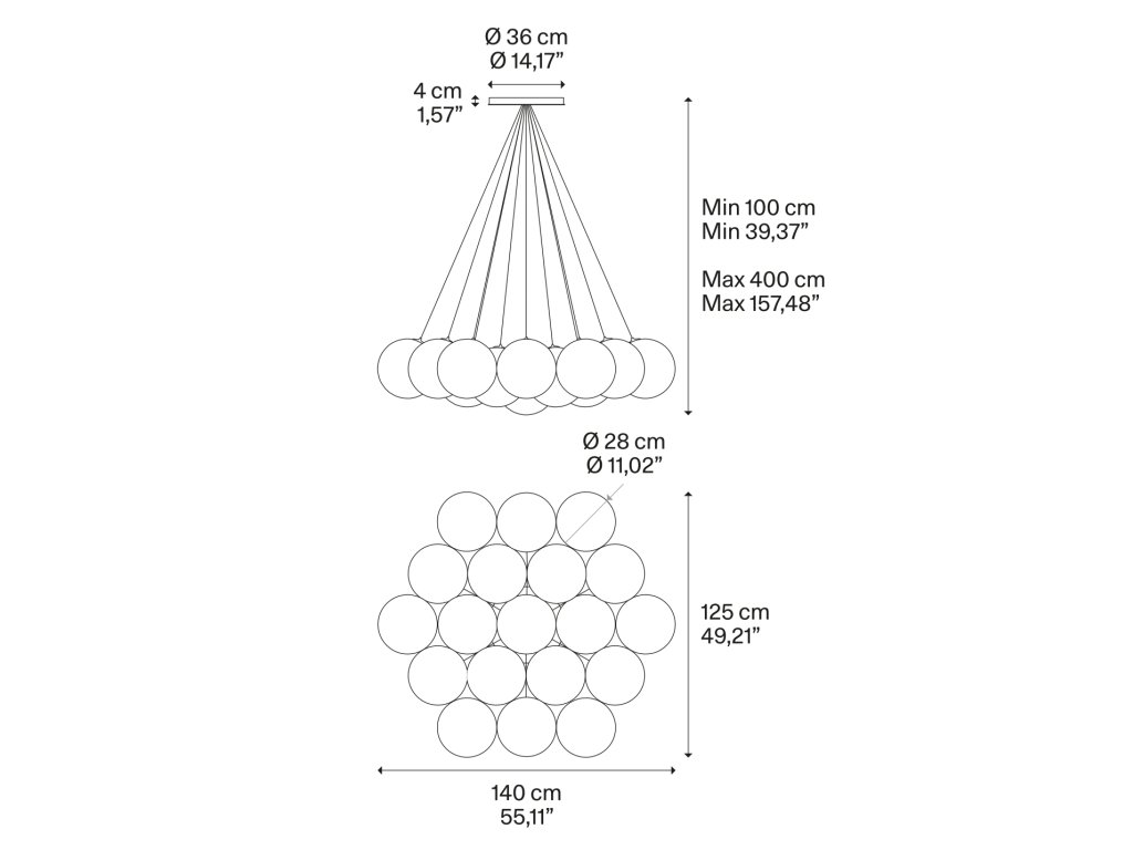 Vďaka svojej univerzálnosti je Random Cloud ideálnym riešením do domácností, hotelov i kancelárskych priestorov, kde okrem dekoratívneho účinku poskytuje aj silný výkon s intenzitou. Každú zostavu je možné prispôsobiť výberom jedného zo siedmich dostupných povrchových úprav a výberom medzi guľami s priemerom 23 alebo 28 cm.