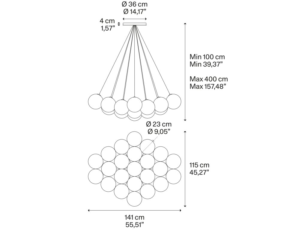 Vďaka svojej univerzálnosti je Random Cloud ideálnym riešením do domácností, hotelov i kancelárskych priestorov, kde okrem dekoratívneho účinku poskytuje aj silný výkon s intenzitou. Každú zostavu je možné prispôsobiť výberom jedného zo siedmich dostupných povrchových úprav a výberom medzi guľami s priemerom 23 alebo 28 cm.
