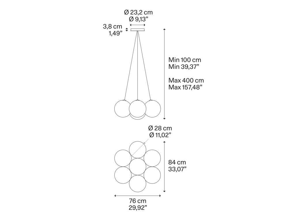 Vďaka svojej univerzálnosti je Random Cloud ideálnym riešením do domácností, hotelov i kancelárskych priestorov, kde okrem dekoratívneho účinku poskytuje aj silný výkon s intenzitou. Každú zostavu je možné prispôsobiť výberom jedného zo siedmich dostupných povrchových úprav a výberom medzi guľami s priemerom 23 alebo 28 cm.