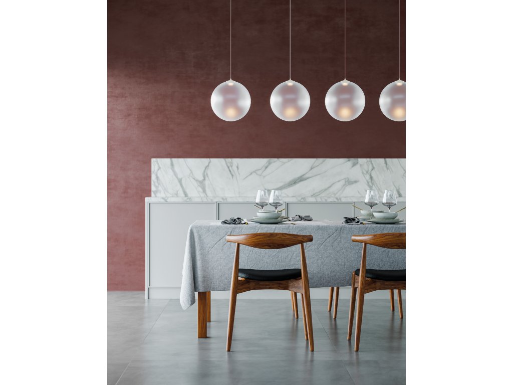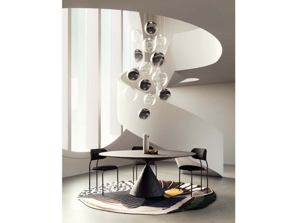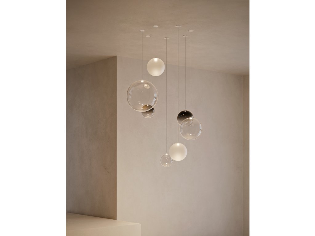 Dizajnové svietidlo RANDOM Solo prináša novú dimenziu ikonickej závesnej lampy Random – tentoraz s dôrazom na individualitu. Pôvodný trojzávesný klaster sa rozpadá na samostatné sklenené gule, ktoré voľne „plávajú“ priestorom ako bubliny svetla a dávajú priestor vašej kreativite.