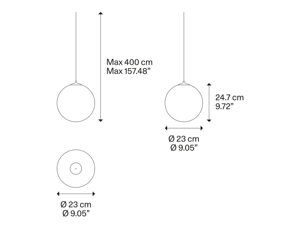 Teraz si môžete vybrať zo šiestich veľkostí a siedmich rôznych povrchových úprav. To znamená úplnú voľnosť v ladení štýlu – či už zvolíte jednotlivý závesný bod, alebo vytvoríte hravú a ľahkú kompozíciu viacerých svietidiel.