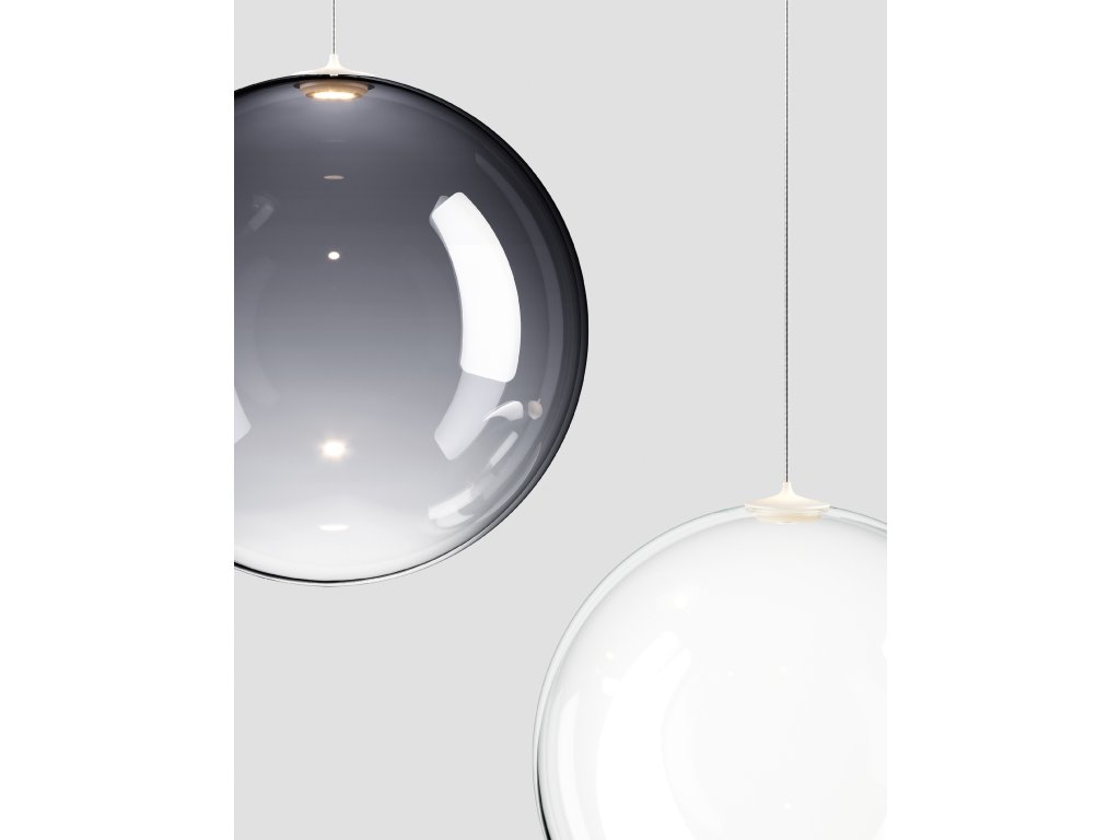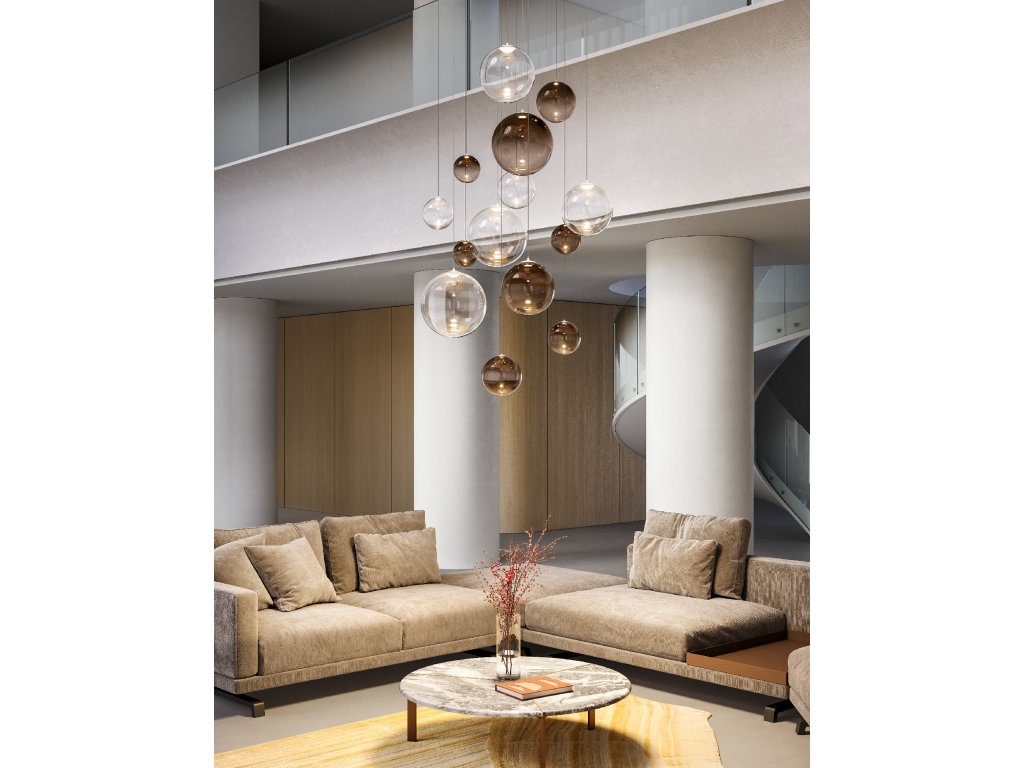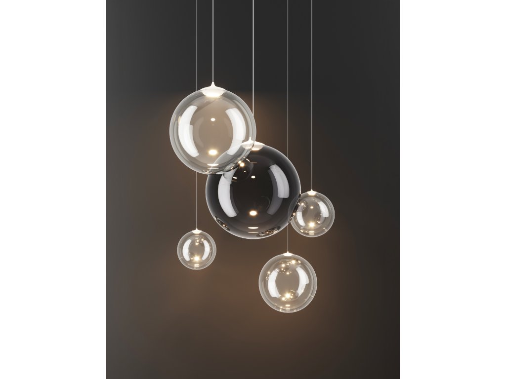 Dizajnové svietidlo RANDOM Solo prináša novú dimenziu ikonickej závesnej lampy Random – tentoraz s dôrazom na individualitu. Pôvodný trojzávesný klaster sa rozpadá na samostatné sklenené gule, ktoré voľne „plávajú“ priestorom ako bubliny svetla a dávajú priestor vašej kreativite.