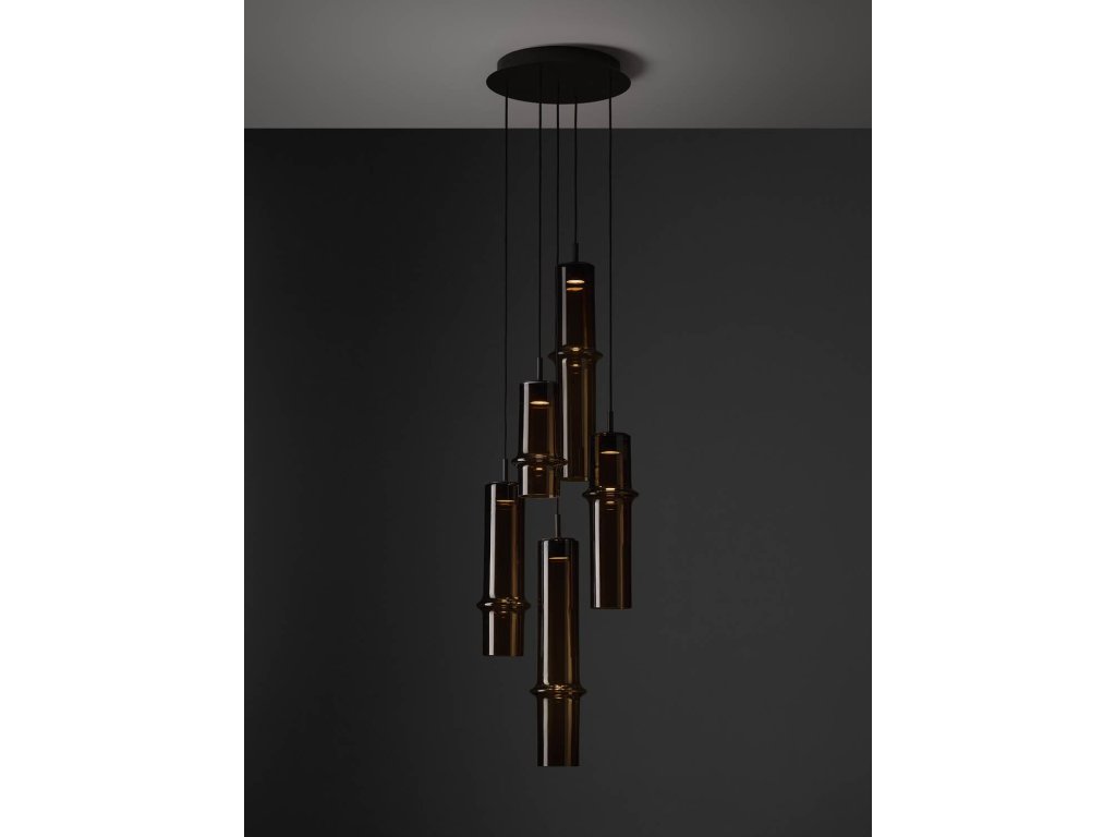 Kolekcia Bamboo forest čerpá inšpiráciu z vertikálnych obrysov týčiacich sa v porastoch bambusu. Ručne tvarované sklo, koncipované tak, aby navodzovalo jedinečnú atmosféru. Kompozícia viacerých svetiel premieňa interiér na oázu plnú pokoja prírodného bambusového lesa. Inovatívny konektor BROKIS umocňuje celkovú variabilitu svetiel tým, že zjednodušuje nielen inštaláciu veľkých zostáv, ale aj údržbu a čistenie. Bamboo Forest je unikátny neobvyklým tvarom svietidiel, ktoré sú dostupné v šiestich rôznych variantoch.  Povrch montúry je čierny elox.