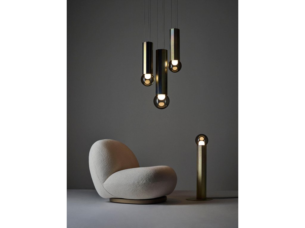 Kolekcia Prisma má extravagantný dizajn tvorený kovovým svietidlom s výraznou povrchovou úpravou. Klasické ručne fúkané sklenené gule sú ukotvené buď na jednom, alebo na oboch koncoch robustného desaťhranného kovového hranola. výberu z dvoch rôznych elegantných povrchových úprav – žltého zinkového laku alebo laku z kefovanej ocele. Kolekcia sa skladá z horizontálneho závesného svietidla s dvoma dvojitými sklenenými guľami a vertikálneho závesného svietidla s jednou sklenenou guľou, ktoré obe visia na drôtených svietidlách. vzpriameného desaťuholníka zakončeného svetelnou sklenenou guľou. Štruktúrovaná povrchová úprava kovového svietidla je jedným z určujúcich rysov kolekcie a spolu s priehľadným sklom alebo šedým dymovým sklom tvorí šperk, ktorým ozdobia súkromné interiéry aj hotely a reštaurácie.
