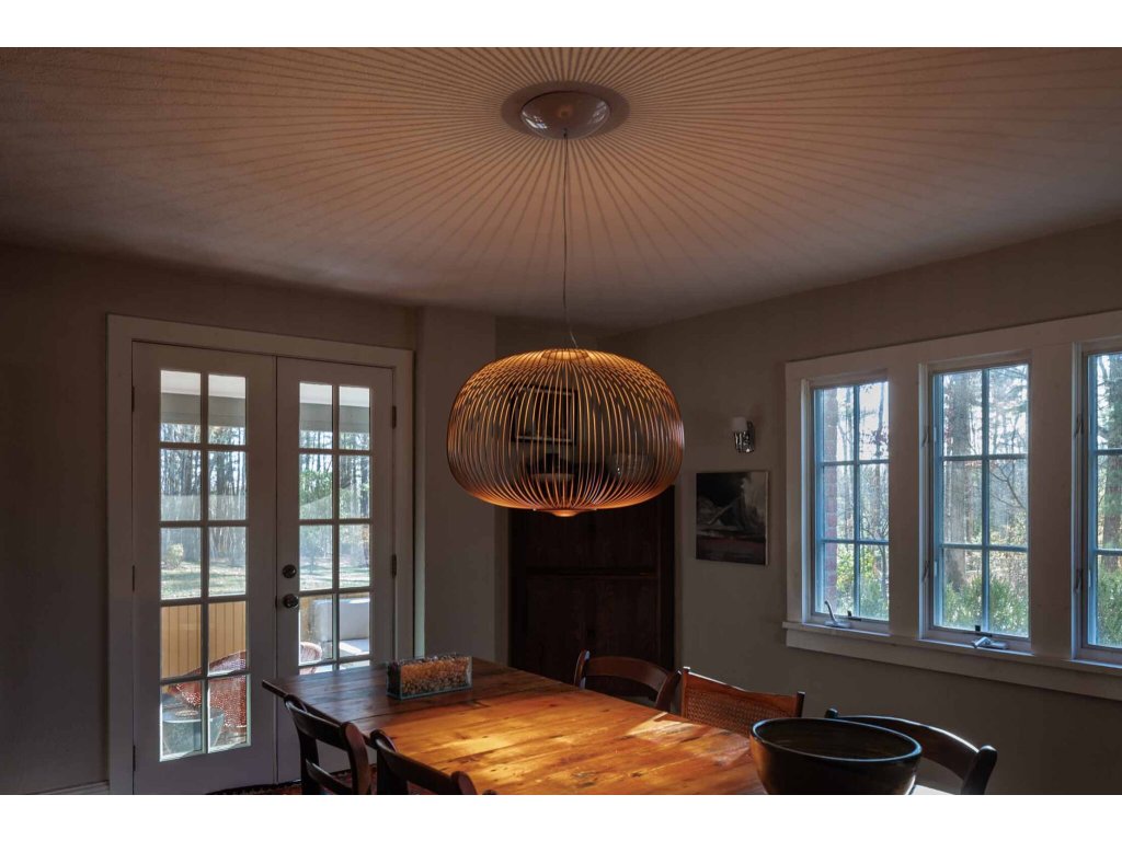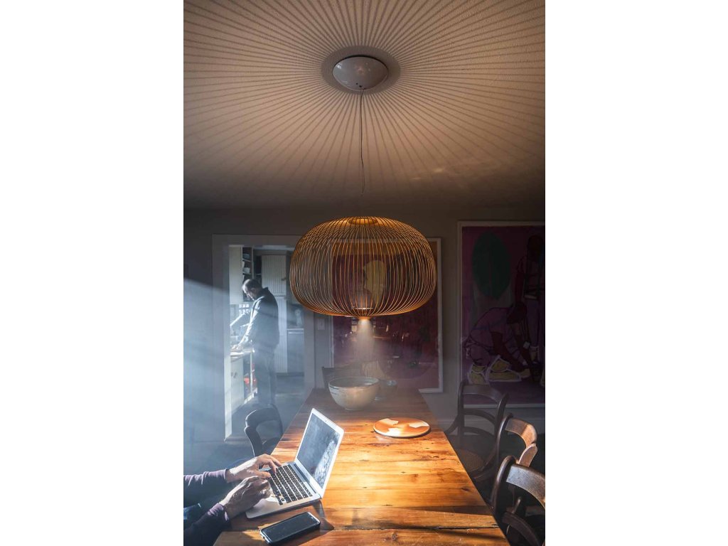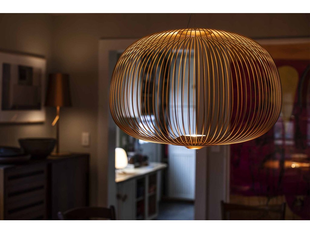Závesné svietidlo Spokes navrhlo pre značku Foscarini štúdio Garcia Cumini, ktoré sa inšpirovalo starožitnými orientálnymi lampášmi a bicyklami. Pozorovaním lúčov bicyklov vznikol mäkký tvar a ľahká lampa umožňujúca okolité dekoratívne osvetlenie. Lúče sú navrhnuté z hliníka a lakovanej ocele. LED svetelný zdroj je umiestnený v spodnej časti svietidla poskytujúce rozptýlené a priame svetlo. Prívodný kábel, ktorý LED diódy napája, je integrovaný do jednej z kovových vzpier, takže nie je zvonku vidieť.K dispozícii v niekoľkých farebných variantoch a na výber sú aj rôzne tvary svietidla. Vhodné ako osvetlenie nad stôl, konferenčný stolík, hodí sa aj do lobby hotelov či ako osvetlenie v obývacej izbe.
