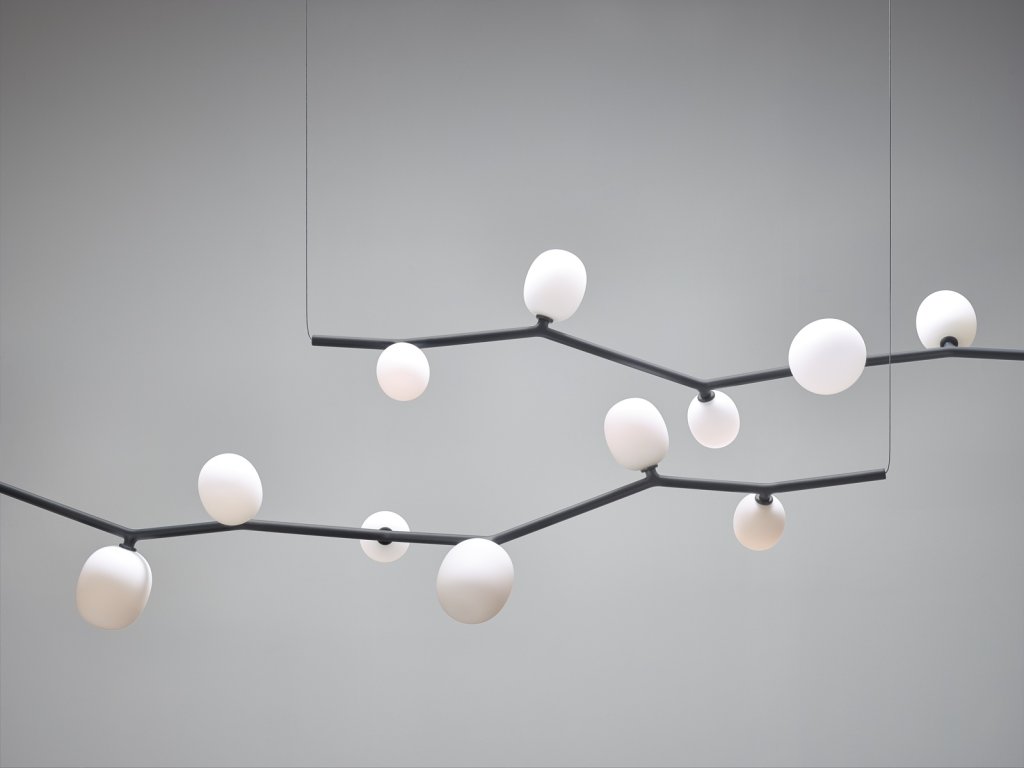 Svietidlá sú zavesené na špeciálnych koaxiálnych kábloch, ľahko sa inštalujú a kombinujú vďaka modulárnym komponentom. Sú dodávané v troch veľkostiach buď v matnom svetlo ružovom, opálovom alebo dymovom skle. Výrazné ručne fúkané sklenené prvky môžu byť usporiadané do zdanlivo nekonečnej palety kompozícií. Kolekcia Ivy je ideálna pre verejné priestory, hotely, kancelárie a mnoho ďalších projektov.