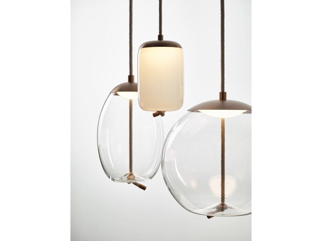 Kolekcia KNOT je kolekciou majestátnych závesných svetiel, ktoré používajú dva dramaticky odlišné materiály. veľkostiach s rôznymi farebnými možnosťami a nechýba ani romantické stolné svietidlo.