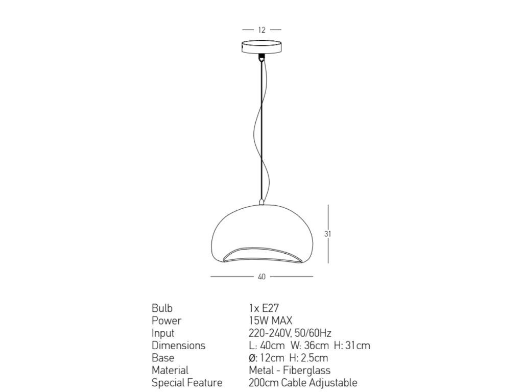 Vneste do svojho interiéru nádych modernej elegancie s týmto jedinečným závesným svietidlom. Minimalistický dizajn so zaoblenými tvarmi a prírodným vzhľadom skvele doplní akýkoľvek priestor. Je ideálnou voľbou na osvetlenie jedálenského stola, kuchynského ostrovčeka alebo relaxačného kúta. Jemné svetlo, ktoré svietidlo vyžaruje, vytvára príjemnú atmosféru a zaisťuje dostatočné osvetlenie bez zbytočného oslnenia.