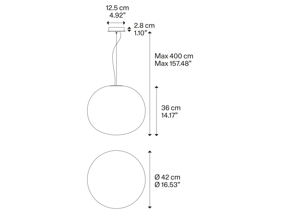 Difúzory zo skla s lesklým bielym povrchom rovnomerne rozptyľujú svetlo a sú dostupné v štyroch priemeroch: 14, 22, 29 a 42 cm.