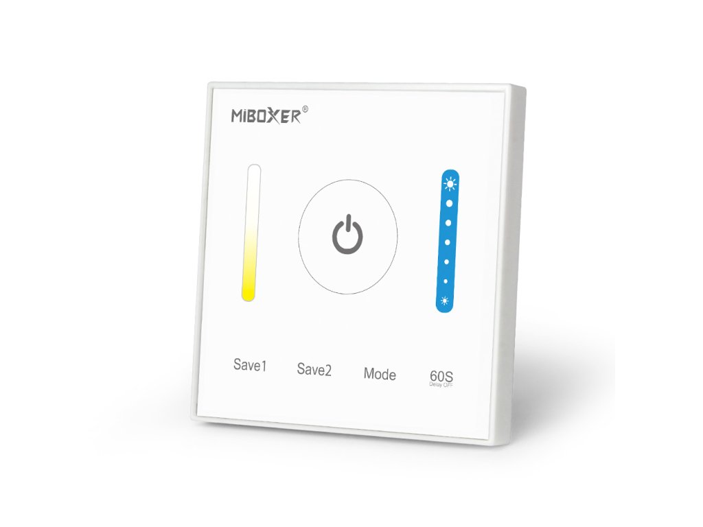 Nástenný LED ovládač s integrovanou riadiacou jednotkou určený pre ovládanie CCT LED pásikov a svietidiel Mi-light..