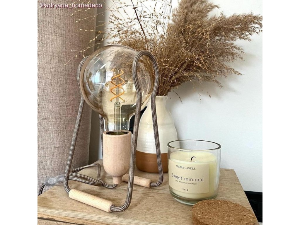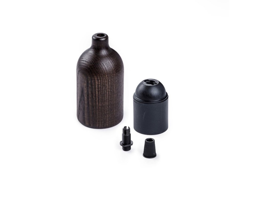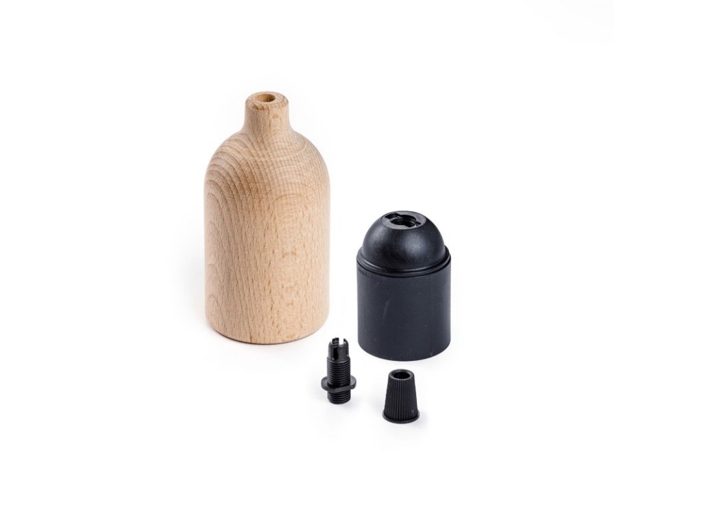 Drevená objímka E27 v sade so skrytou káblovou priechodkou.