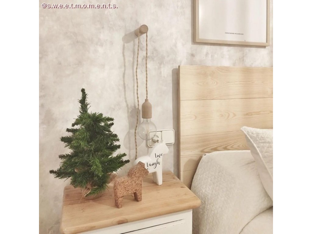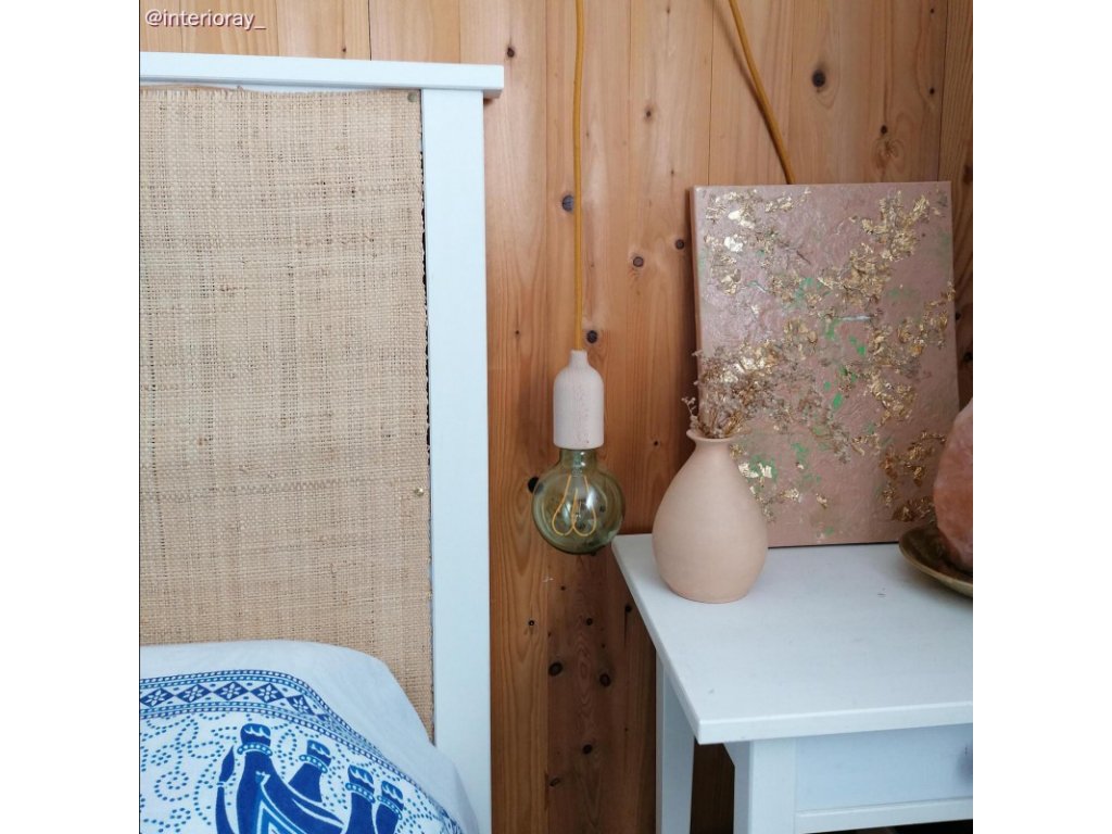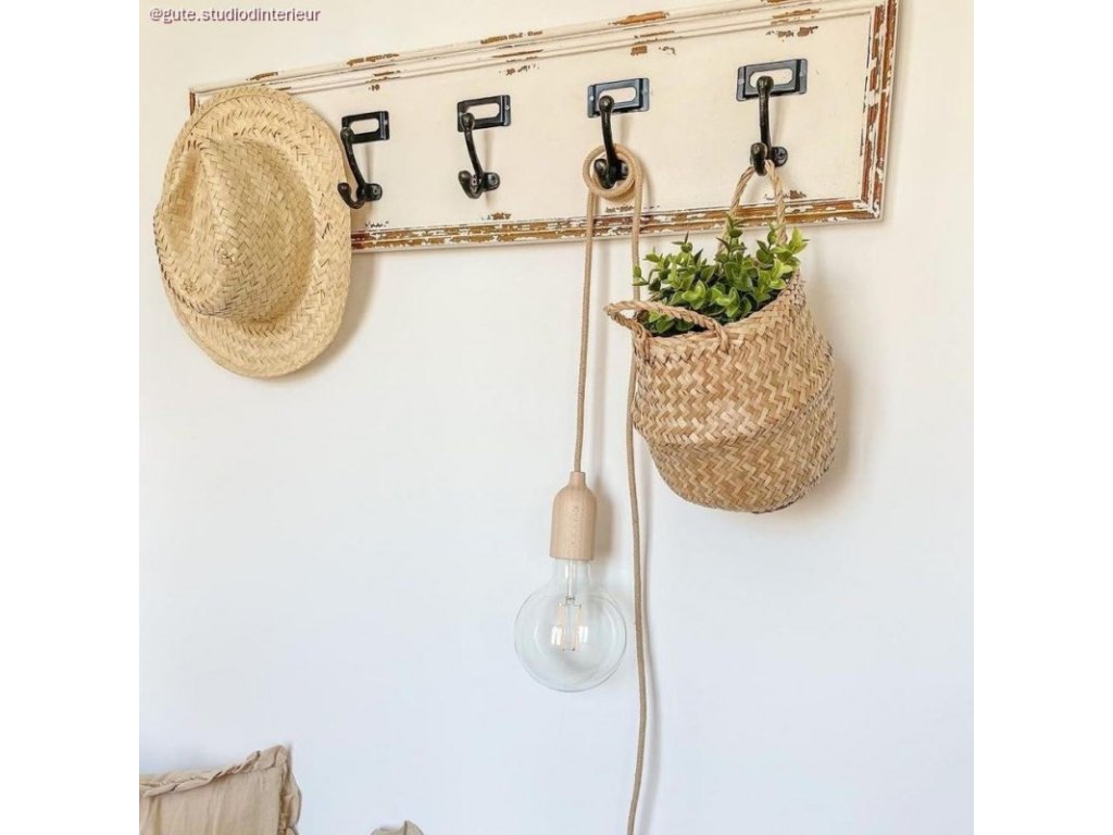 Ďalší nápad: nakombinujte drevenú objímku a stropný baldachýn v rovnakej povrchovej úprave a inštaláciu doplňte kontrastným farebným káblom, alebo v prírodnej povrchovej úprave, ak dávate prednosť harmonickému efektu.
