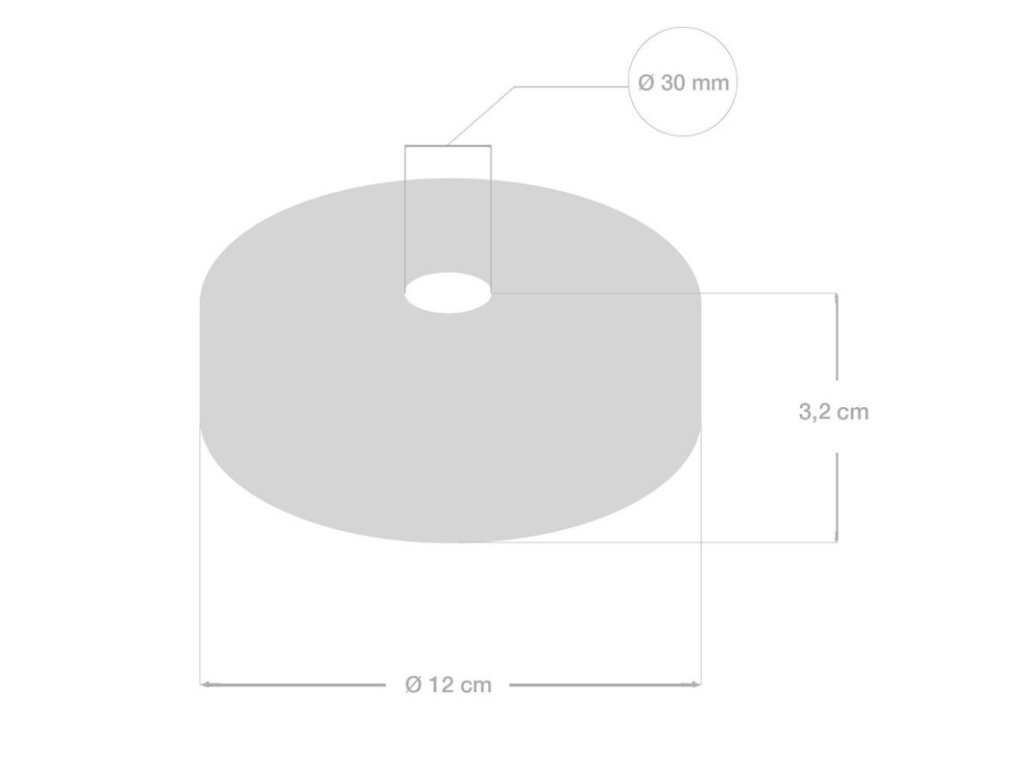 Rozmery: V 32 mm, Ø 120 mm. Otvor: 30 mm. Kotviaca konzola so skrutkami Ø 8 mm.