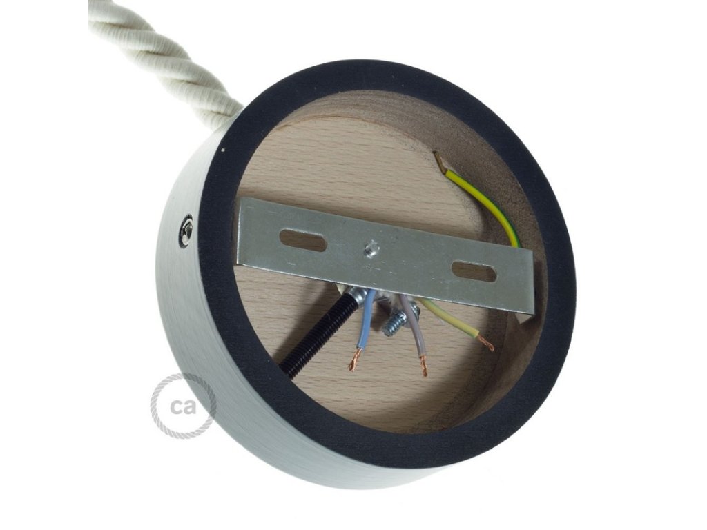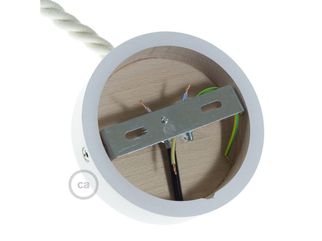 UPOZORNENIE: Elektrické svorky pre zapojenie stropného baldachýnu k elektrickému vedeniu NIE JE SÚČASŤOU balenia, ale je možné ich zakúpiť samostatne. Drevený stropný baldachýn v sade pre XL lanový kábel.