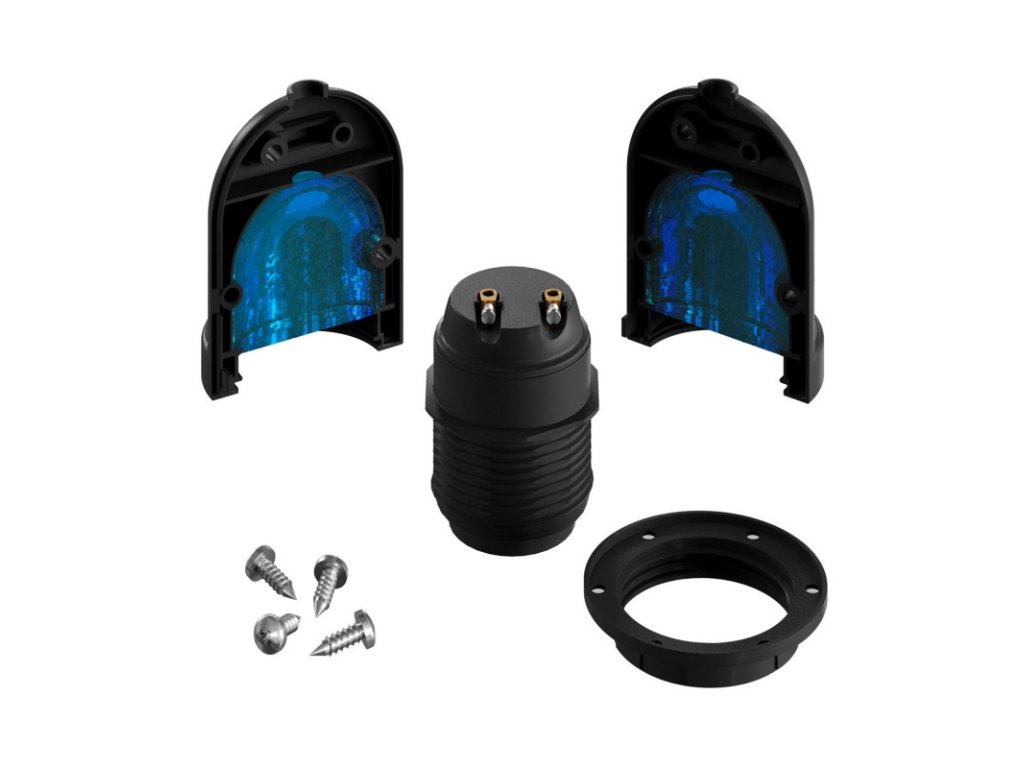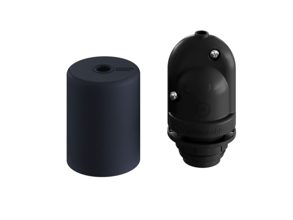 Každá súčasť EIVA systému má udelený medzinárodný patent spoločnosti Creative-Cables. Objímka v sade je zložená z krytky z jemného silikónu, objímky EIVA E27 so stupňom ochrany IP65 a integrovanej káblovej svorky. Ideálna pre vytvorenie závesnej lampy do exteriéru, ktorá je odolná voči vode a dažďu, spolu s textilným káblom do exteriéru a stropným baldachýnom rovnakej série (nie je súčasťou sady).