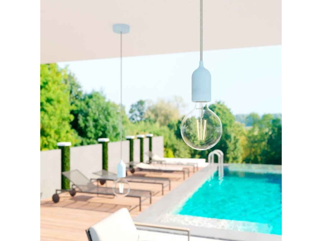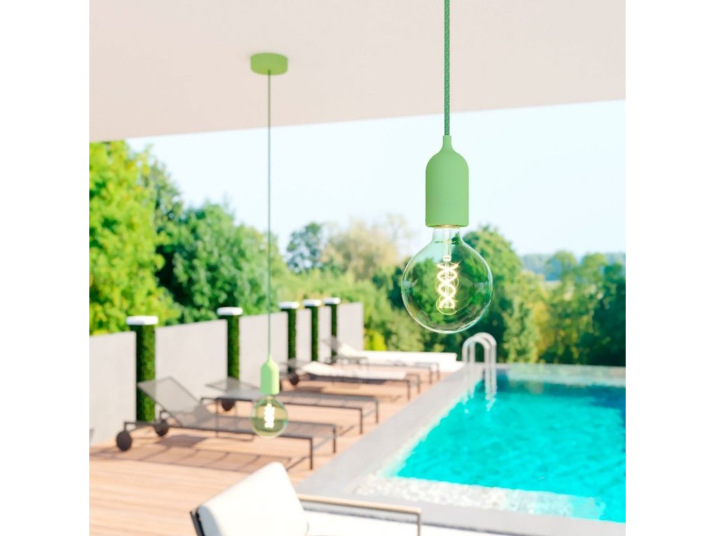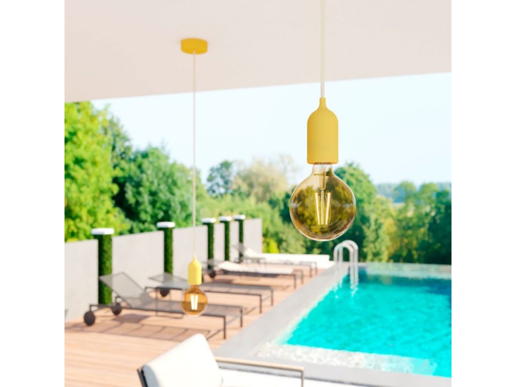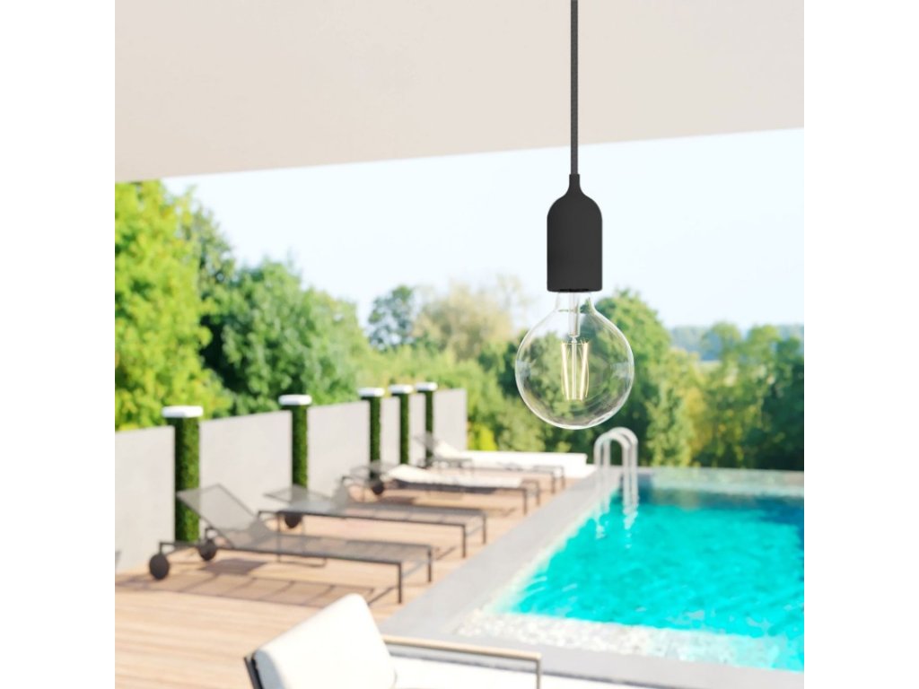 Ideálna pre vytvorenie závesnej lampy do exteriéru, ktorá je odolná voči vode a dažďu, spolu s textilným káblom do exteriéru a stropným baldachýnom rovnakej série (nie je súčasťou sady).