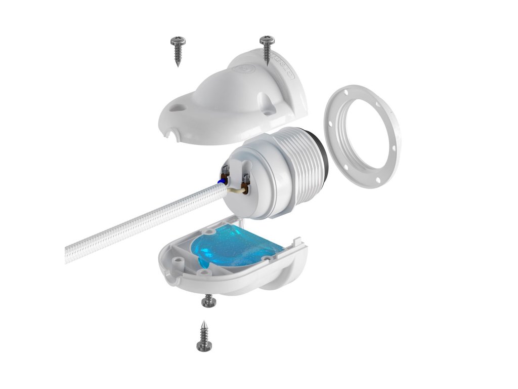 - Škárujte objímku so silikónovým baldachýnom IP65 vo farbe, ktorá sa Vám najviac páči.