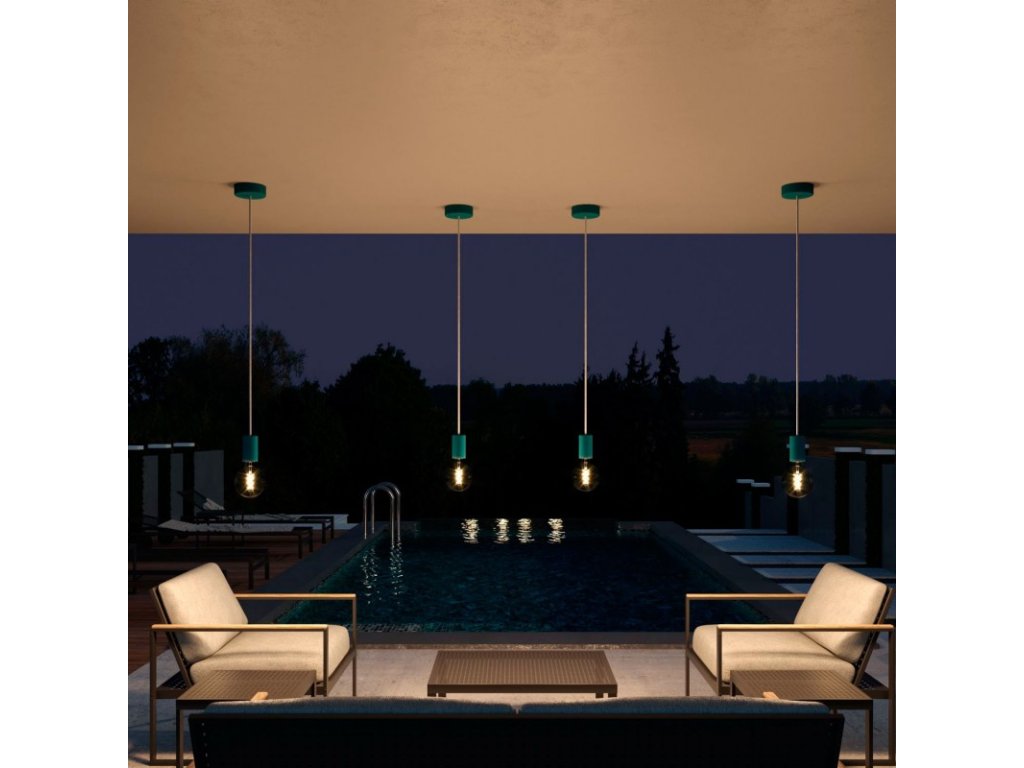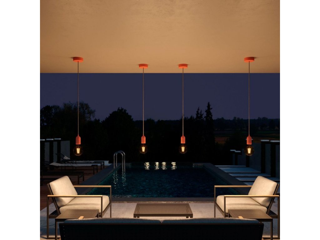 Od dnešného dňa si môžete vďaka systému EIVA vytvoriť svoju vlastnú lampu do exteriéru. Stropný baldachýn EIVA je rovnako ako objímka kľúčovým prvkom systému EIVA. Vďaka špeciálnemu izolačnému gélu, ktorý je súčasťou priloženej skrinky, môžu byť spolu použité na vytvorenie závesného svietidla so stupňom ochrany IP65, vďaka ktorému sú bezpečne odolné voči dažďu a búrke. Táto vodotesná stropná baldachýn, ktorá je dostupná v rôznych farebných odtieňoch, je vyrobená z hladkého mäkkého silikónu a vytvára elegantný efekt. Je perfektný na zostavenie jednoduchých nástenných alebo stropných závesných lámp s použitím vonkajších káblov 2x1,00 od Creative-Cables 2x1.00 a vodotesných objímok systému EIVA s ladiacim krytom. Vonkajší osvetľovací systém EIVA je kompletne navrhnutý spoločnosťou Creative-Cables a umožní vám osvetliť vaše vonkajšie priestory, ako sú záhrady alebo terasy, pomocou originálnych a prispôsobiteľných riešení.