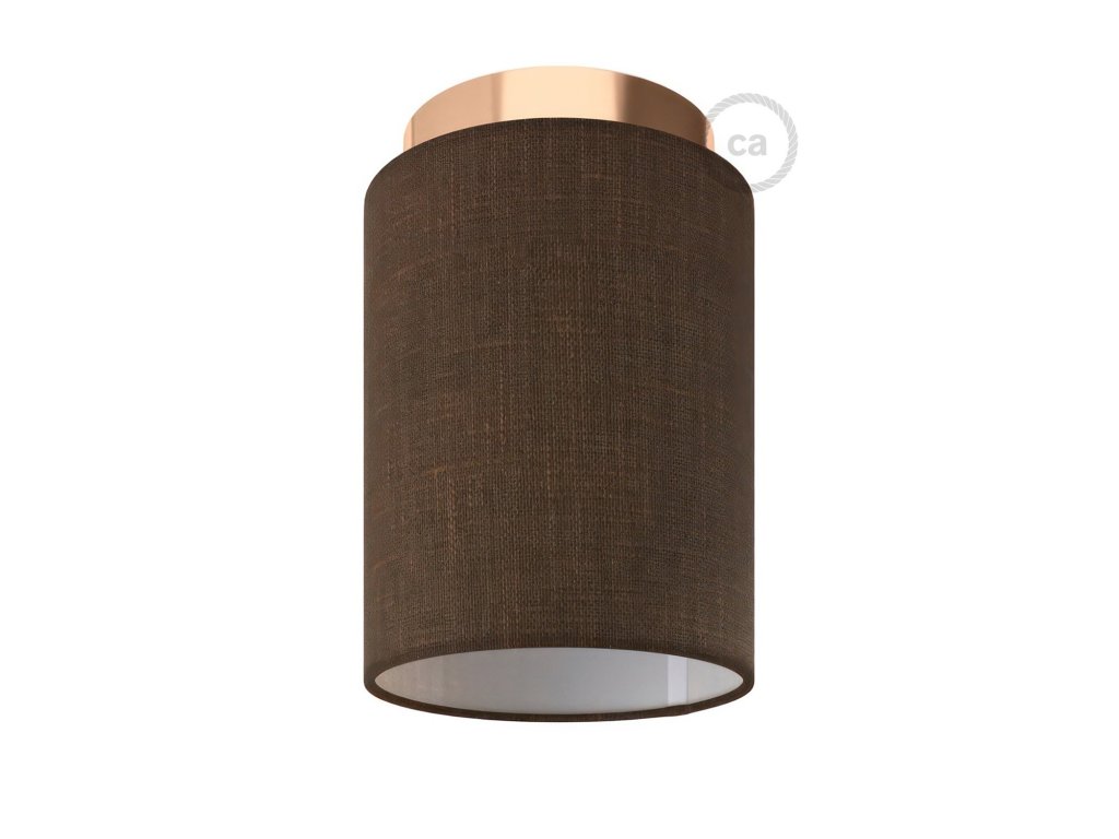 Najelegantnejšia verzia kovového svietidla Fermaluce Glam kombinuje praktické a štýlové bodové svietidlo s valcovým tienidlom a vytvára krásne a originálne nástenné alebo stropné svetlo. Valcové tienidlo je vyrobené v Taliansku špecializovanou remeselnou dielňou. Vyberte si z dostupných pastelových odtieňov tohto textilného tienidla, aby čo najlepšie zodpovedali štýlu vášho interiéru.