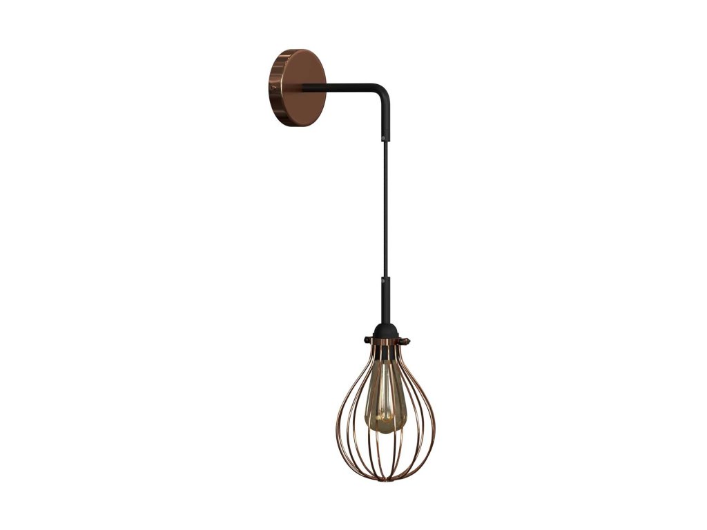 Fermaluce Urban so zavesenou klietkou v tvare Kvapky je ideálne nástenné svietidlo na osvetlenie Vášho interiéru. Milovníci priemyselného designu v tejto lampe určite rozpoznajú tvary a materiály typické pre trendy tohto štýlu interiéru. Toto nástenné svietidlo sa perfektne hodí na osvetlenie vášho otvoreného priestoru, obývacej izby alebo jedálne, najmä ak je pripevnená k tehlovej stene. Zvláštnosťou tejto kovovej nástennej lampy je zavesenie tienidla: rozhodli sme sa predĺžiť dĺžku lampy pridaním kábla k ohnutej predlžovacej trubičke: to pomáha zvýrazniť tienidlový rám - klietku, v celej kráse a robí túto lampu perfektnou pre interiéry s vysokými stropmi. Vyberte si povrchovú úpravu súčastí, aby čo najlepšie zodpovedala palete vášho interiéru. Lampu je možné zakúpiť bez zdroja svetla alebo s príslušenstvom - zlatá LED Edison ST64 s dvojitým špirálovým vláknom.