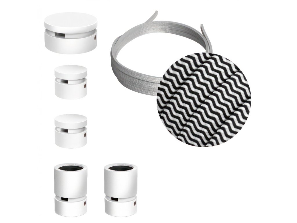 Filé systém - zostava pre cik-cak inštaláciu - 3m kábla pre svetelné reťaze a 5 bielych lakovaných drevených komponentov