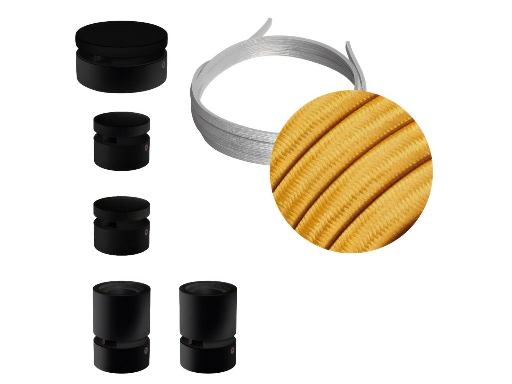 Filé systém - zostava pre cik-cak inštaláciu - 3m kábla pre svetelné reťaze a 5 čiernych lakovaných drevených komponentov