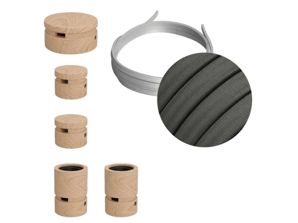 Filé system - zostava pre cik-cak inštaláciu - 3m kábla pre svetelné šnúry a 5 drevených komponentov