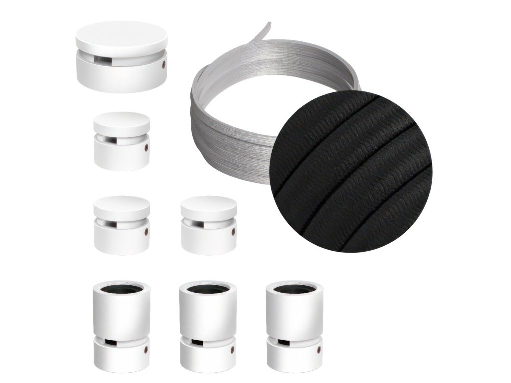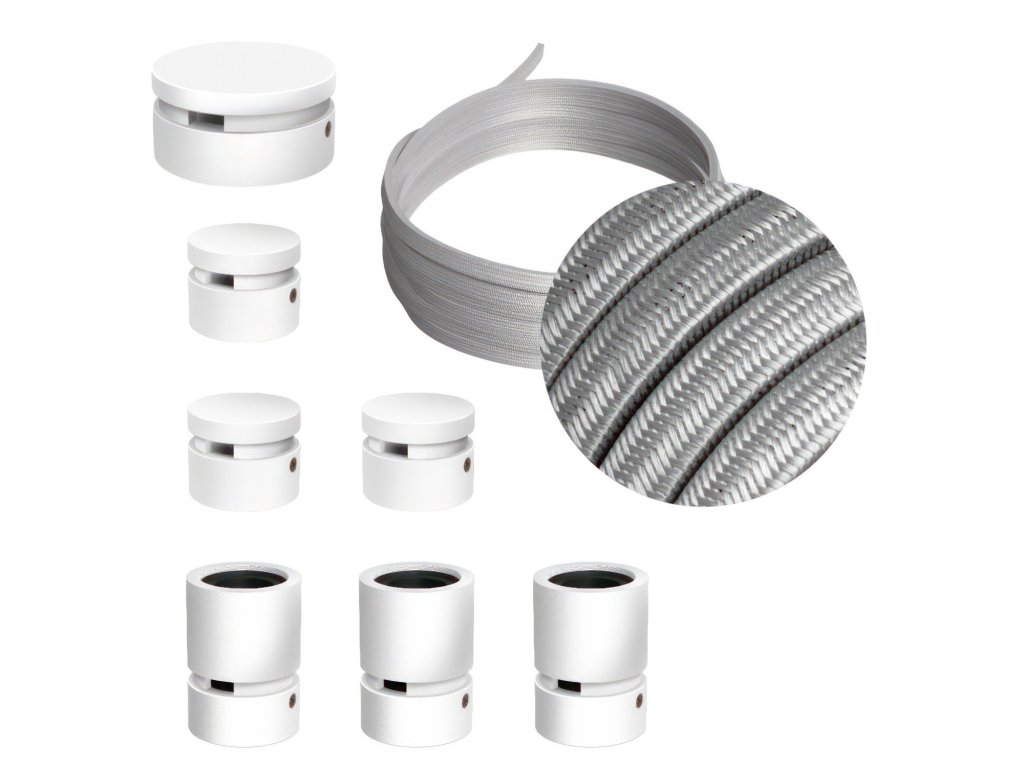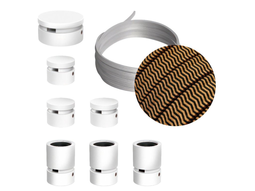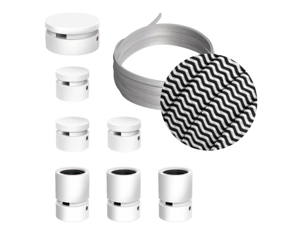 Filé systém - zostava pre priamu inštaláciu - 5m kábla pre svetelné reťaze a 7 bielych lakovaných drevených komponentov