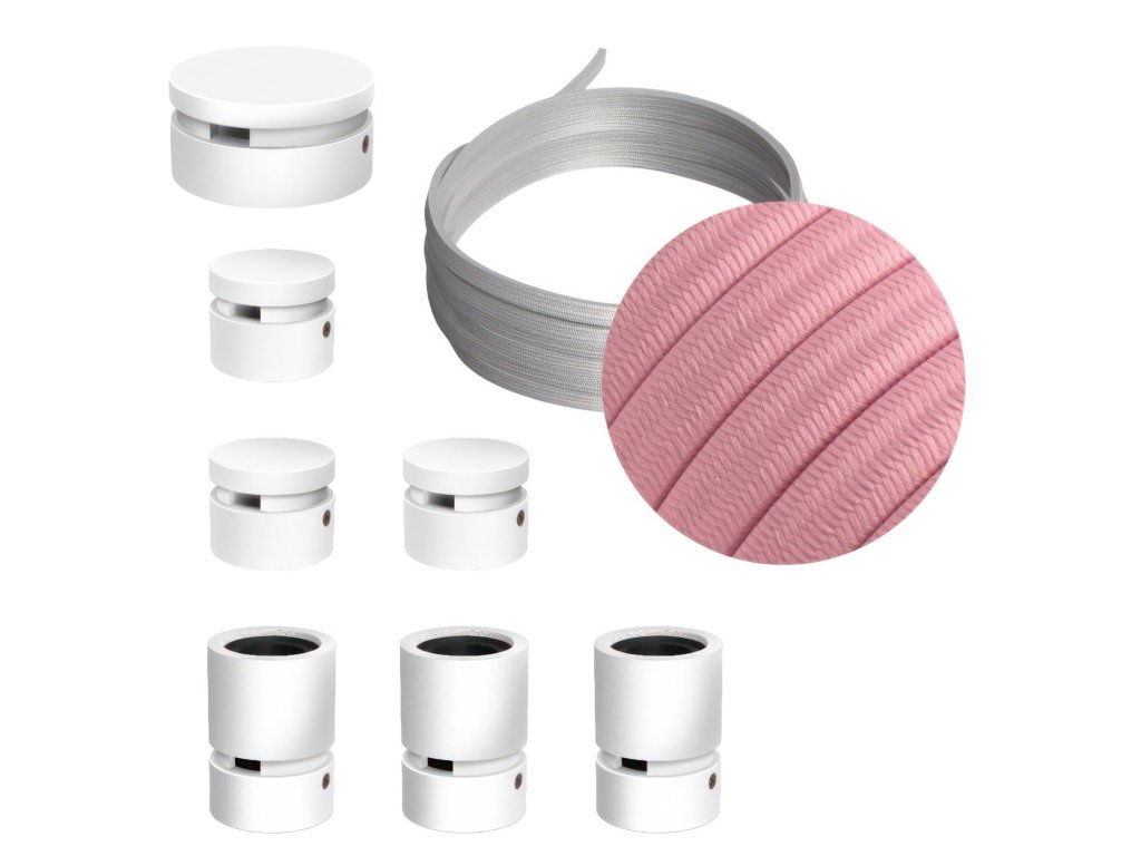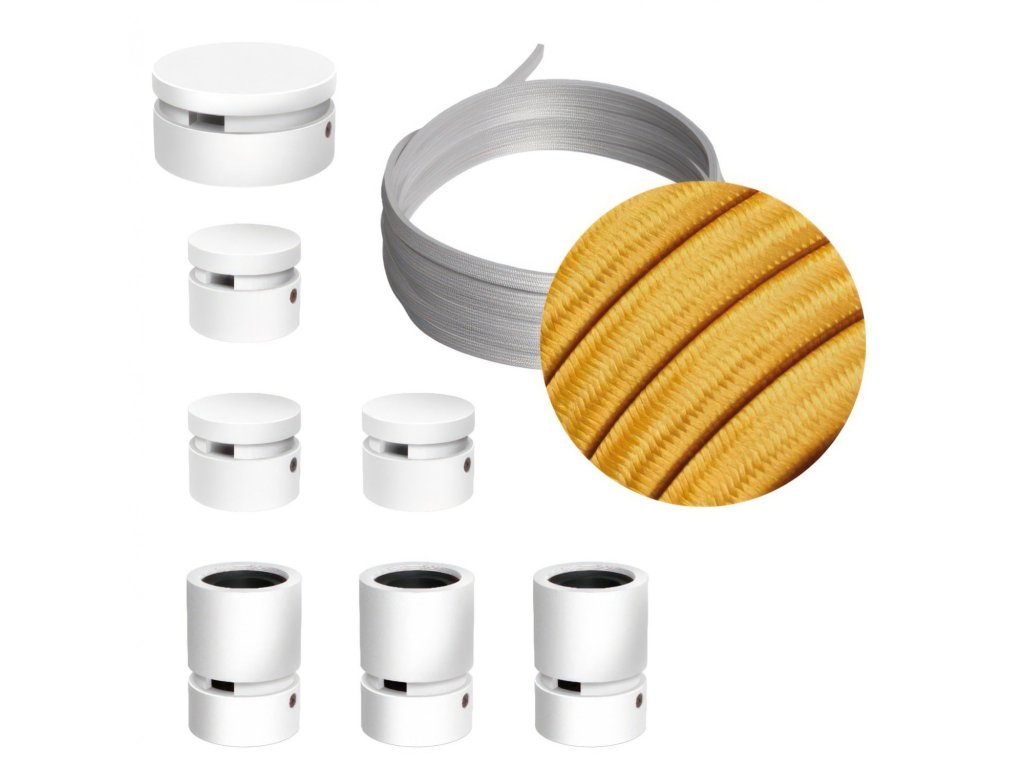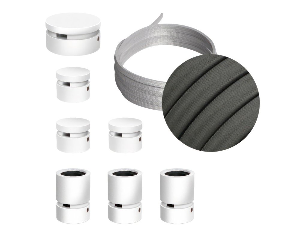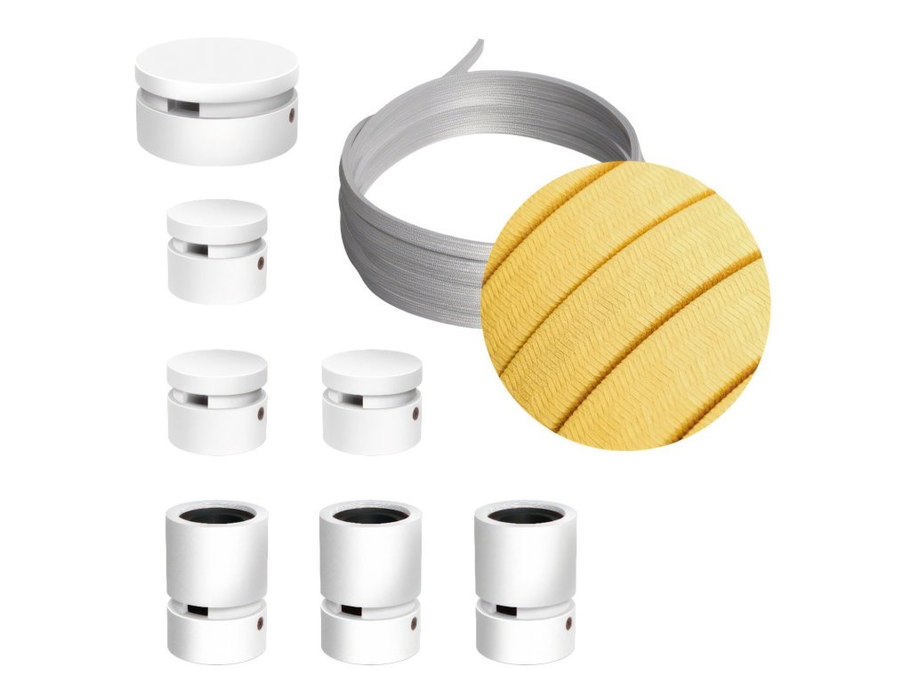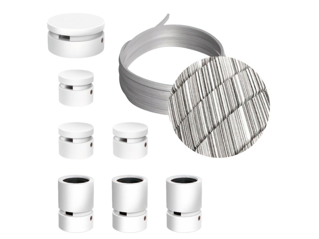 Filé systém - zostava pre priamu inštaláciu - 5m kábla pre svetelné reťaze a 7 bielych lakovaných drevených komponentov