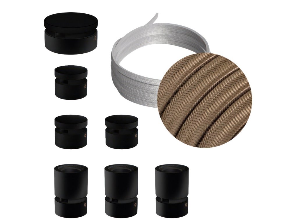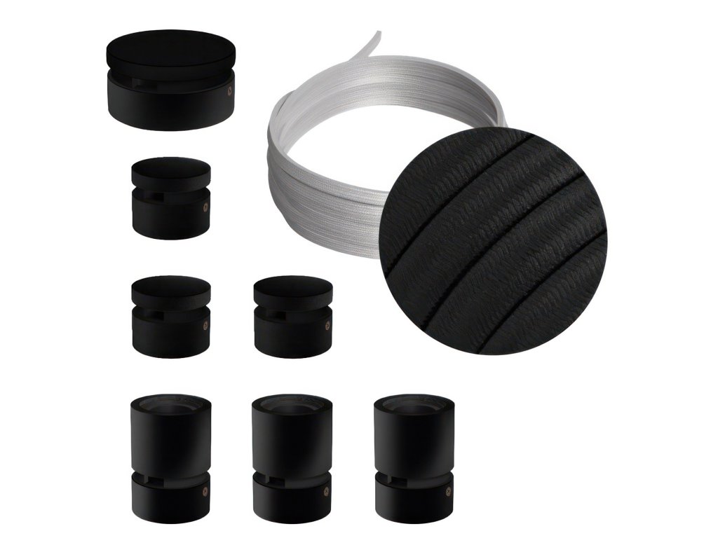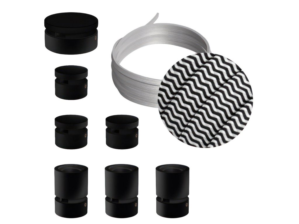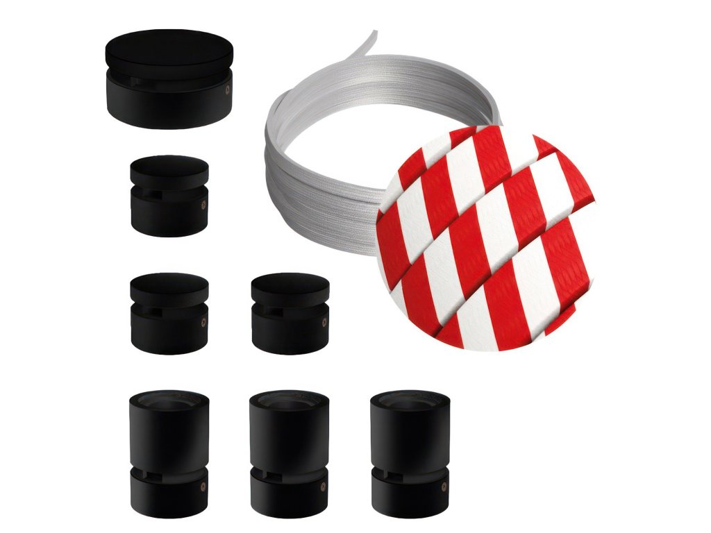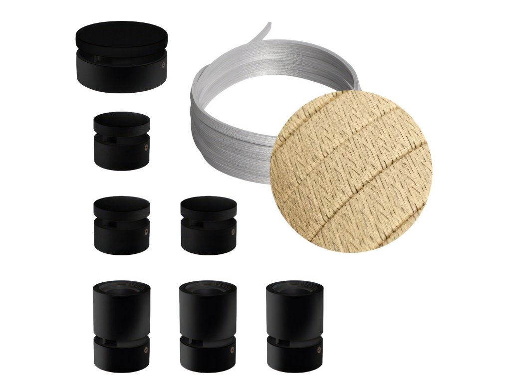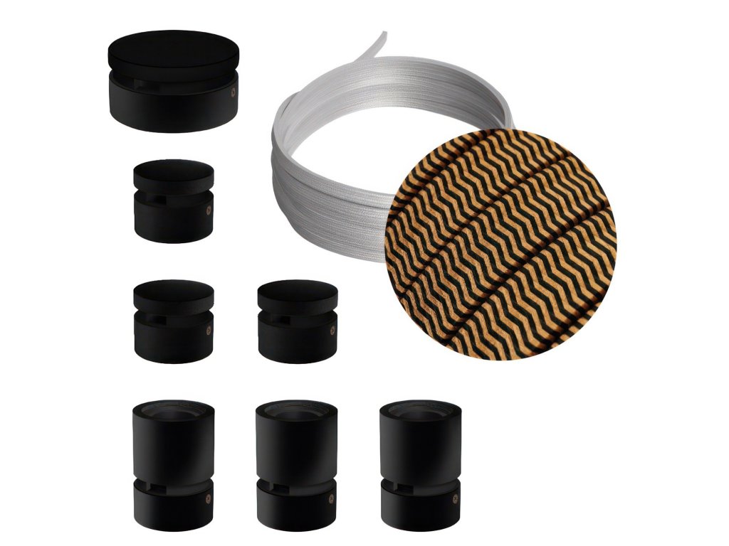 Filé systém - zostava pre priamu inštaláciu - 5m kábla pre svetelné reťaze a 7 čiernych lakovaných drevených komponentov