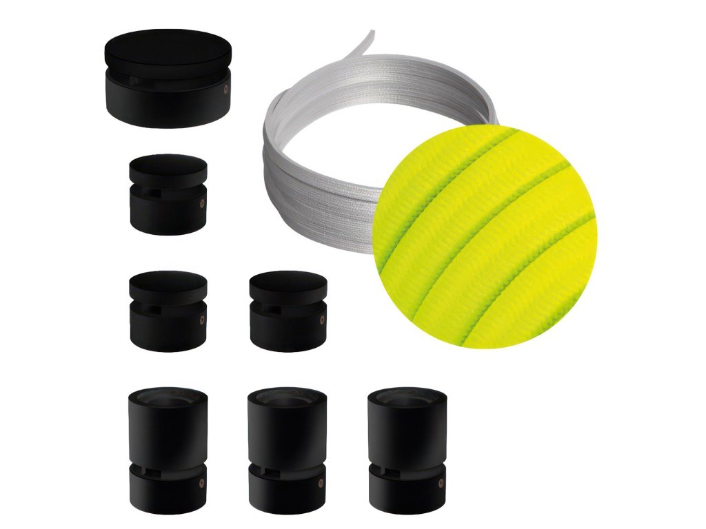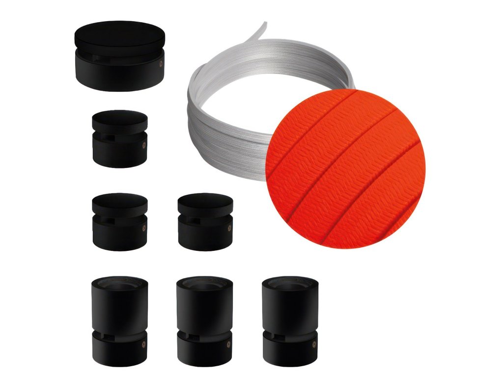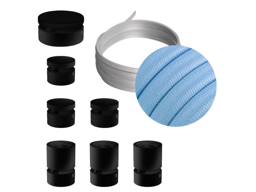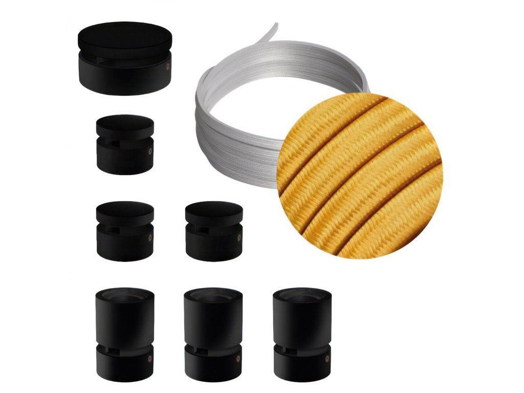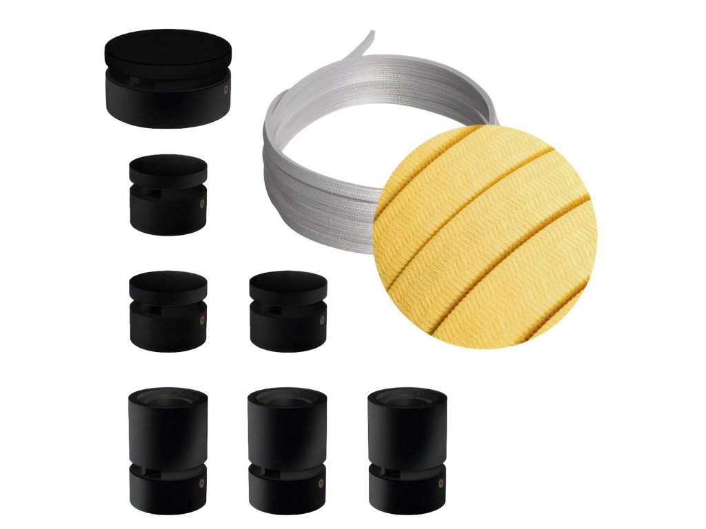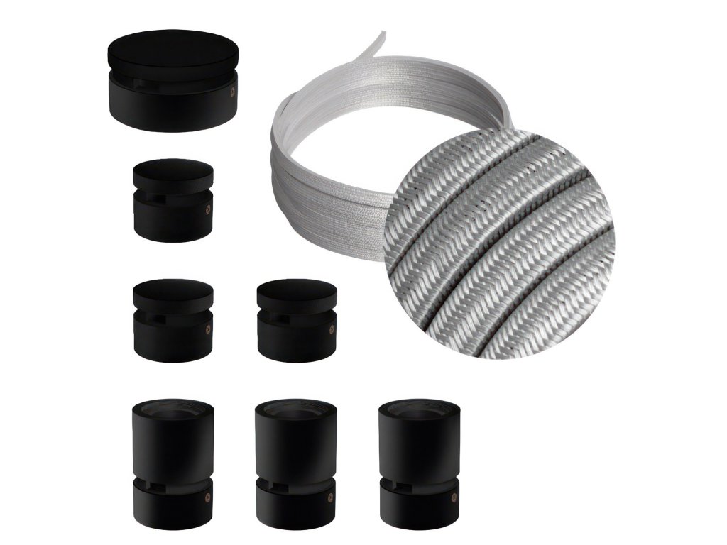 Filé systém - zostava pre priamu inštaláciu - 5m kábla pre svetelné reťaze a 7 čiernych lakovaných drevených komponentov