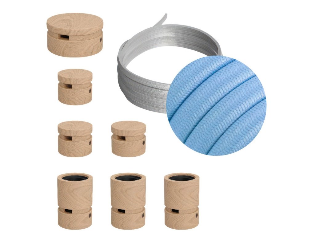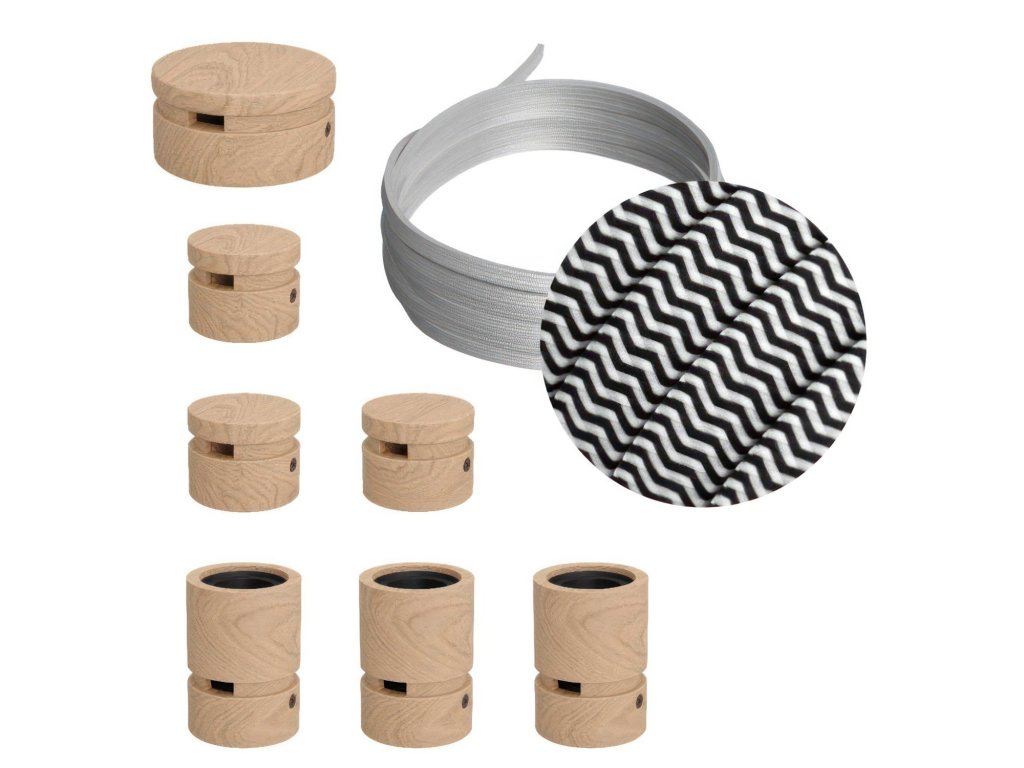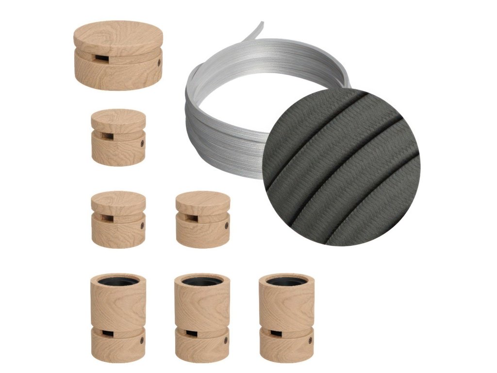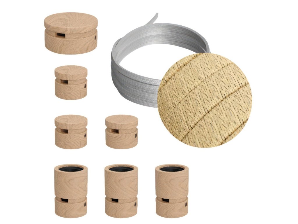 Filé system - zostava pre priamu inštaláciu - 5m kábla pre svetelné šnúry a 7 drevených komponentov