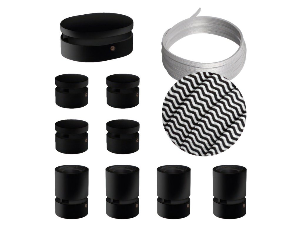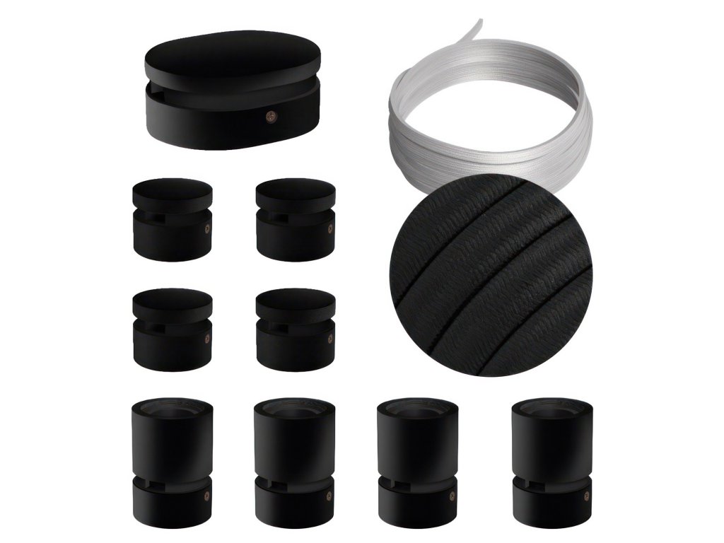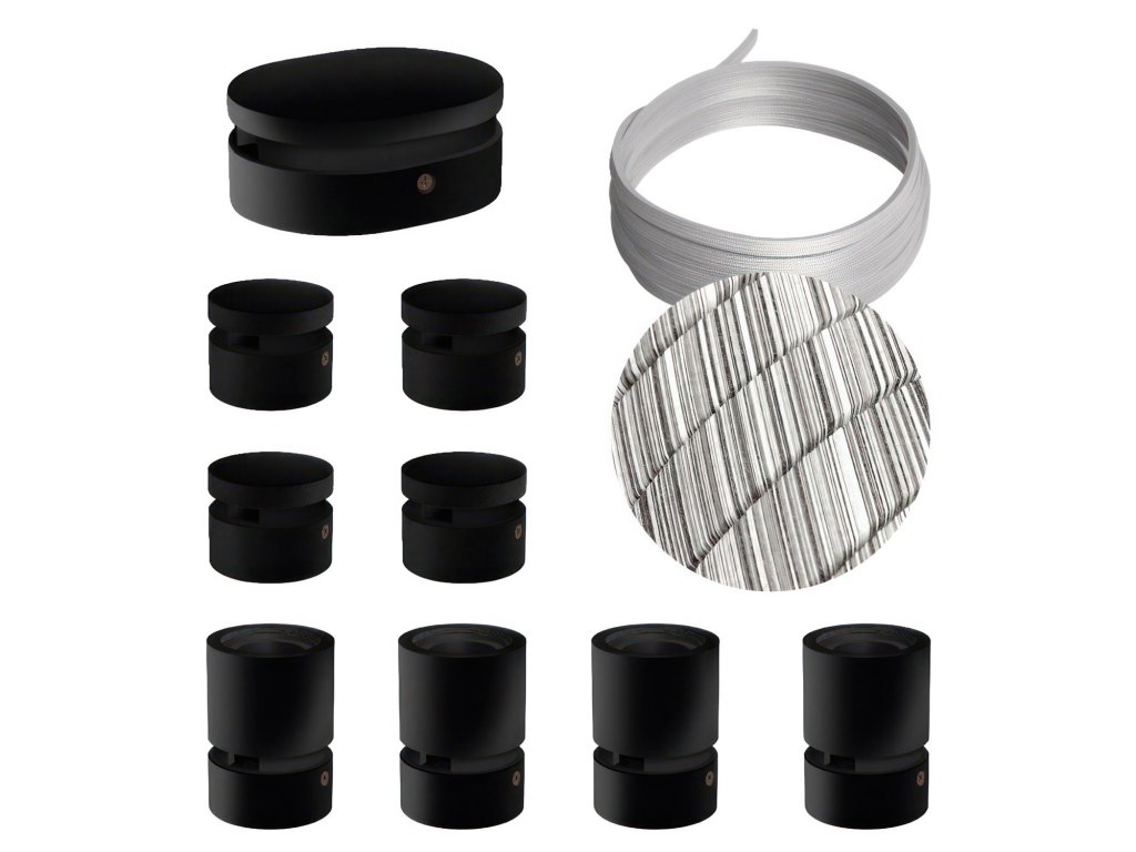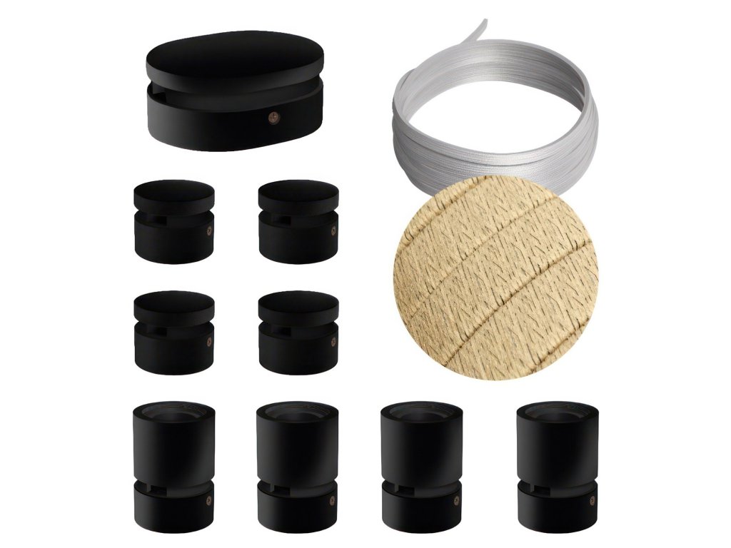 Filé systém - zostava pre symetrickú inštaláciu - 5m kábla pre svetelné reťaze a 9 čiernych lakovaných drevených komponentov
