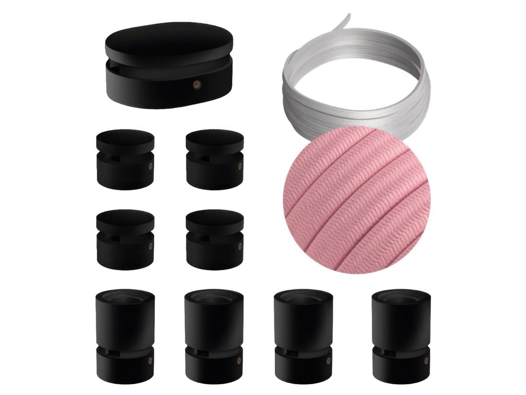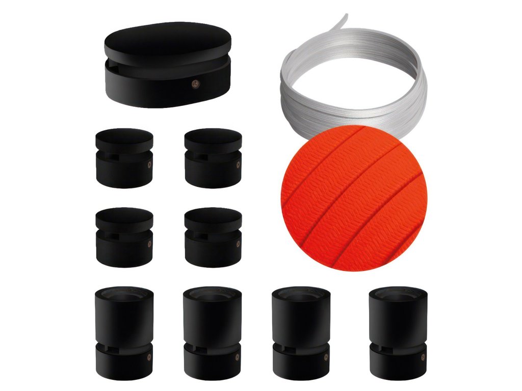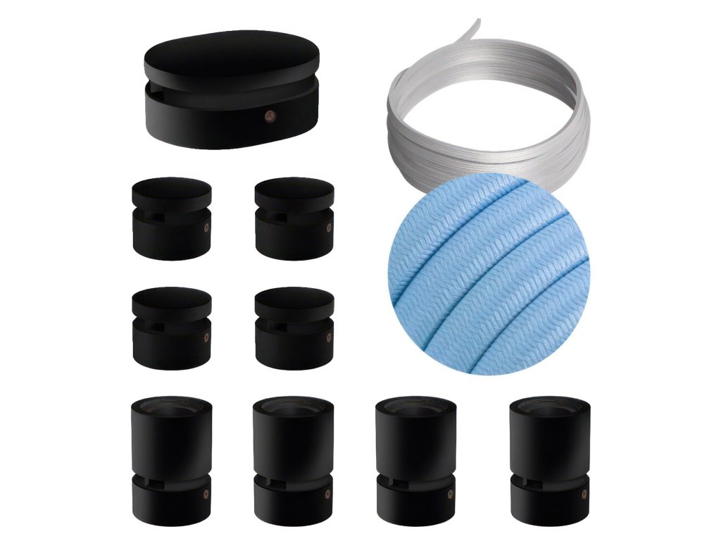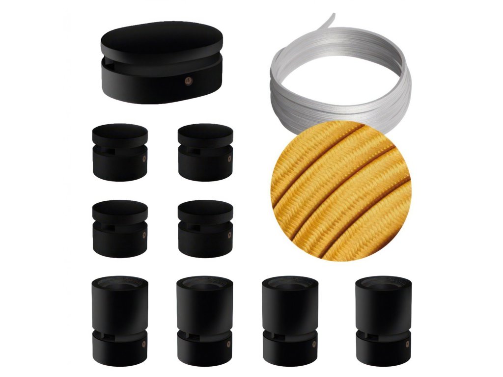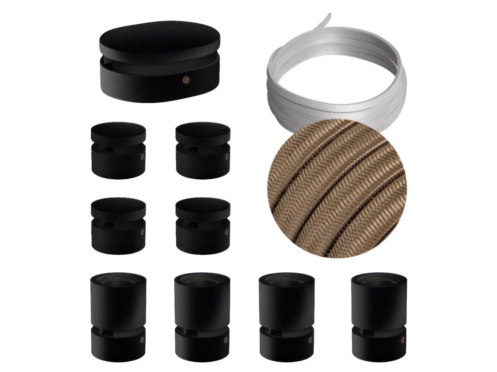 Filé systém - zostava pre symetrickú inštaláciu - 5m kábla pre svetelné reťaze a 9 čiernych lakovaných drevených komponentov