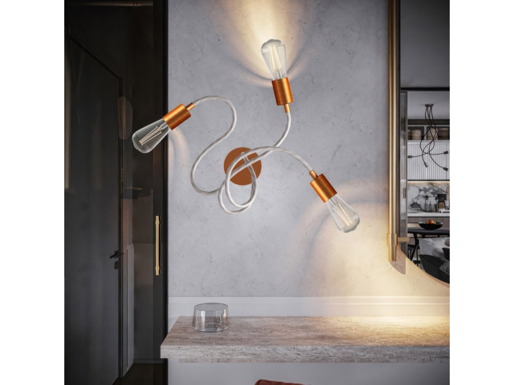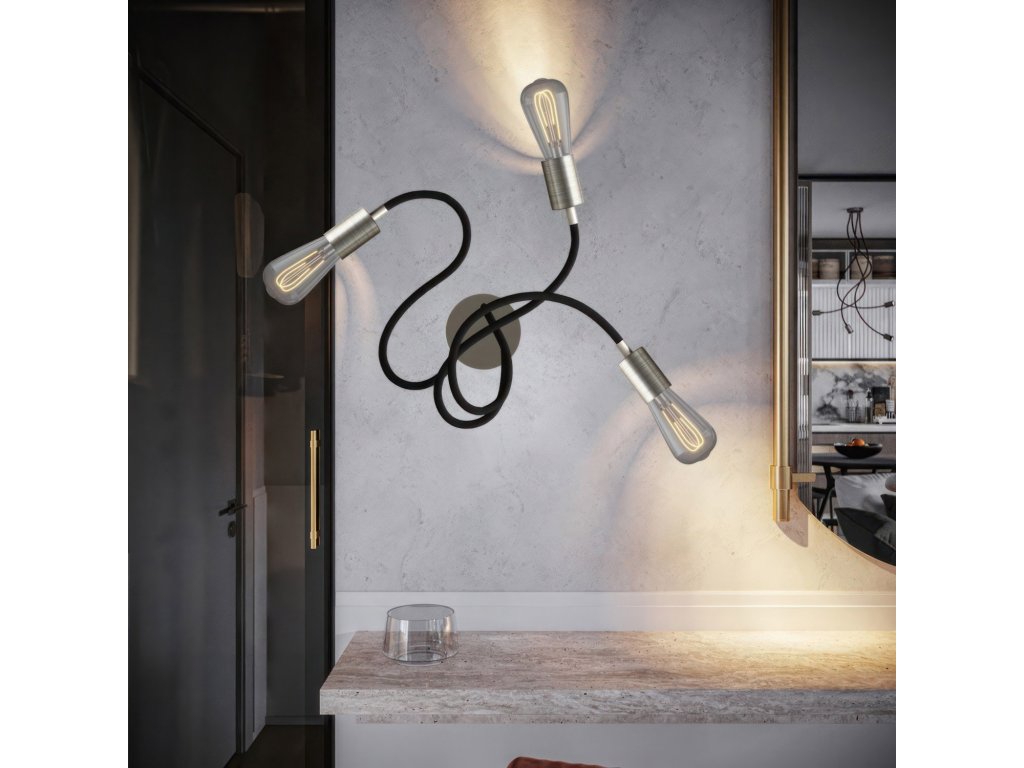 Vďaka Flex 60cm, ktorý je nastaviteľný a flexibilný, budete môcť osvetliť svoje priestory stropným svietidlom, ktoré poskytuje rozptýlené svetlo. Zvoľte si povrchovú úpravu, ktorá sa Vám najviac páči a či si prajete luster už so žiarovkou tvaru ST64 alebo bez nej. Baldachýn, objímka a žiarovka LED ST64 sú k dispozícii v 3 rôznych kombináciách Flex. Ak chcete zachovať tvar Vašej lampy, ohnite celý kábel Flex.