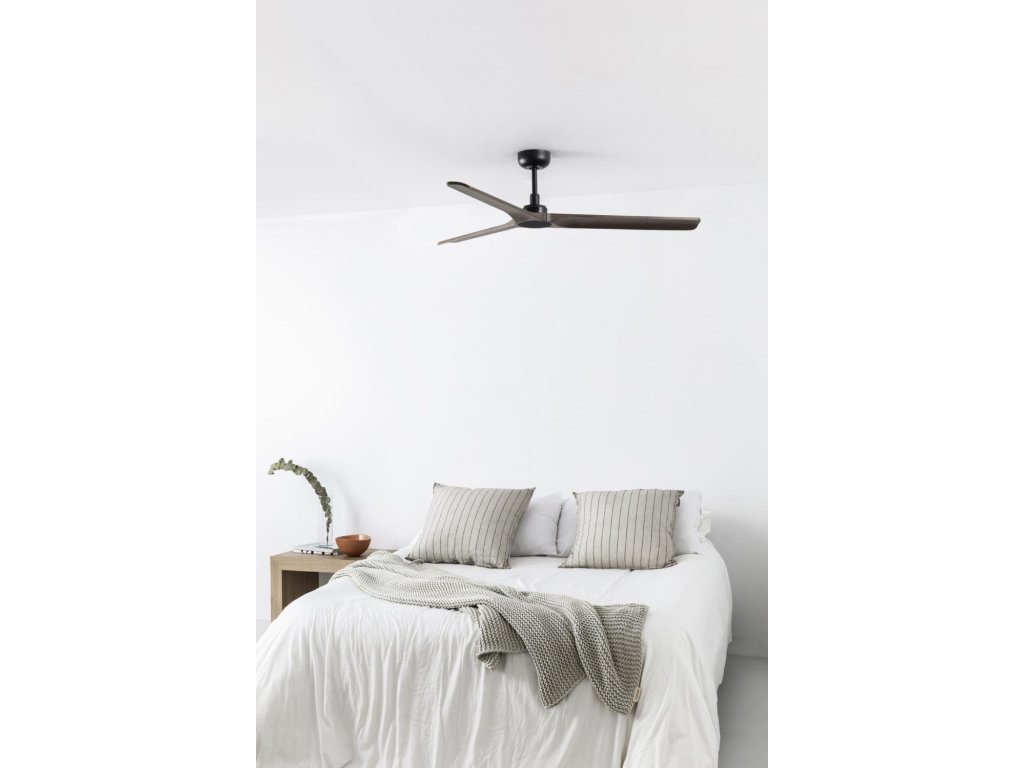 HEYWOOD L stropný ventilátor, čierna/tmavé drevo s DC motorom - FARO
