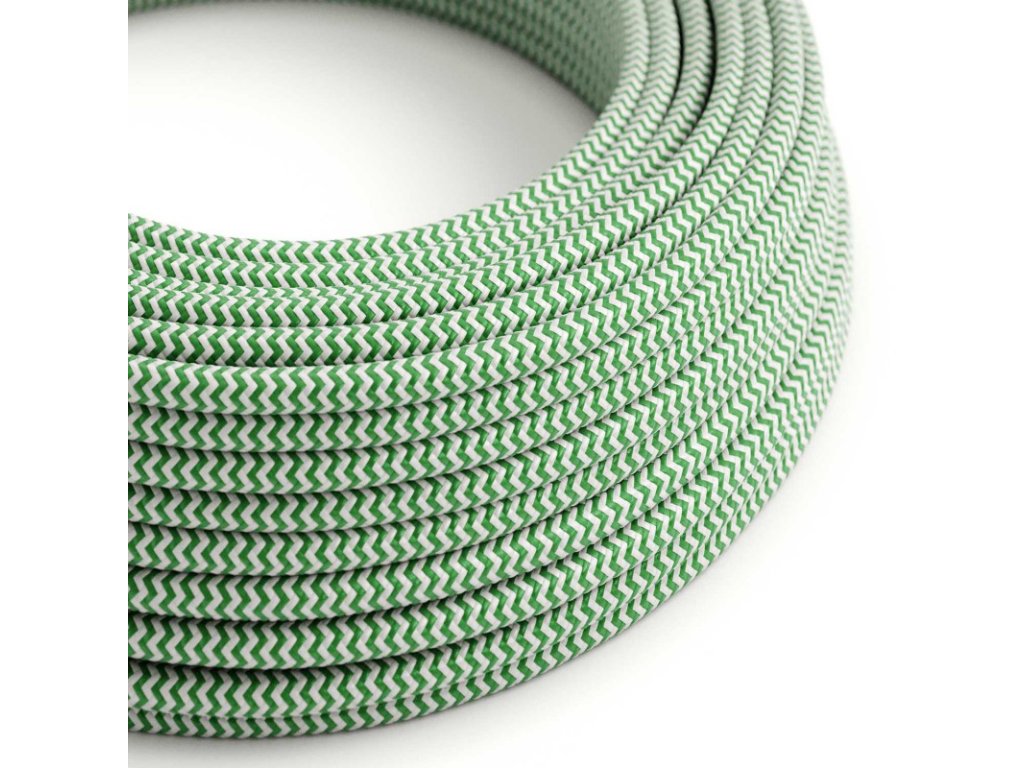 Hodvábny textilný elektrický kábel, RZ06 zeleno biely cik cak