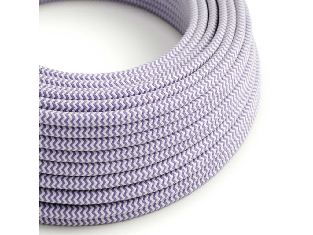 Hodvábny textilný elektrický kábel, RZ07 lilavo biely cik cak