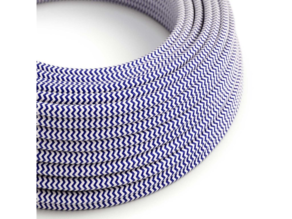 Hodvábny textilný elektrický kábel, RZ12 modro biely cik cak