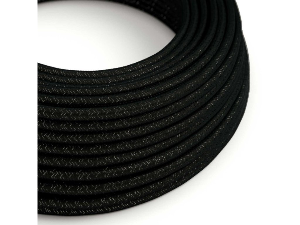 Hodvábny textilný elektrický kábel - trblietavý efekt - RL04 čierny