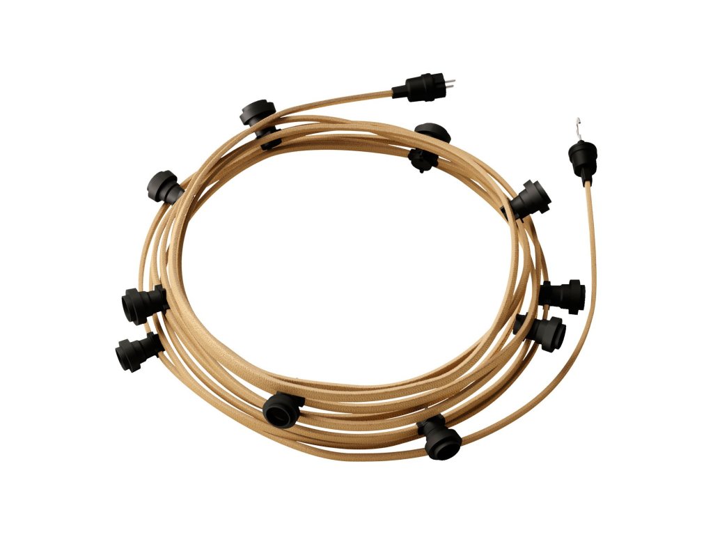 Systém Lumet je úžasný spôsob, ako rozjasniť záhradu alebo altánok. Nádherne vynikne aj v interiéri pri slávnostnom stretnutí. S nádhernými farbami textilných káblov objavíte všetko, čo potrebujete, aby ste na Vašej spoločenskej udalosti ľahko vytvorili príjemnú atmosféru. Hotová svetelná reťaz je poskladaná zo Schuko zástrčky, háčika a 10 kusov bielych objímok E27. Háčik Vám umožní pripevniť svietidlo kam potrebujete, môže byť vedený krížom cez miestnosť alebo naopak pozdĺž miestnosti.