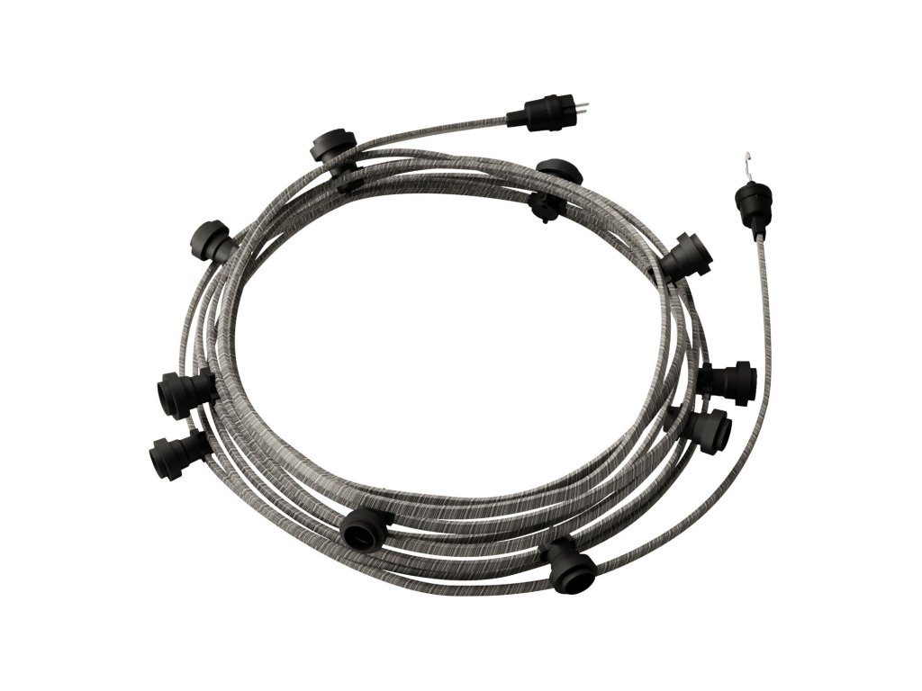 Hotová svetelná reťaz LUMET 12,5 m je zostavená z 10 čiernych objímok, háčika a zástrčky