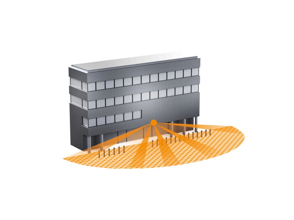 - Dosah: max. 20 m (7 m²), tangenciálne max. 8 m