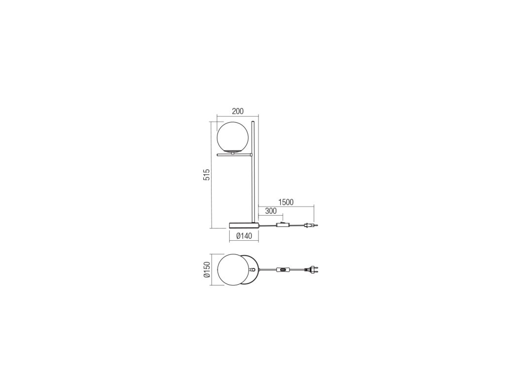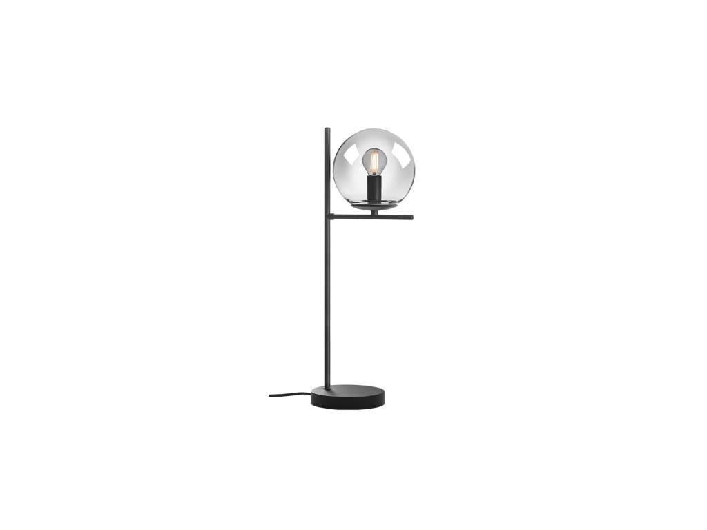 Interiérová stolná lampa, kovová konštrukcia v pieskovo čiernej farbe, fúkaný sklenený difúzor.